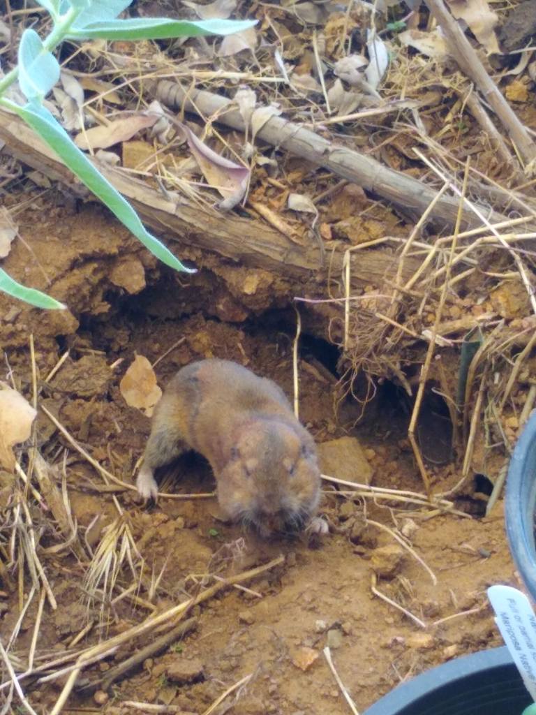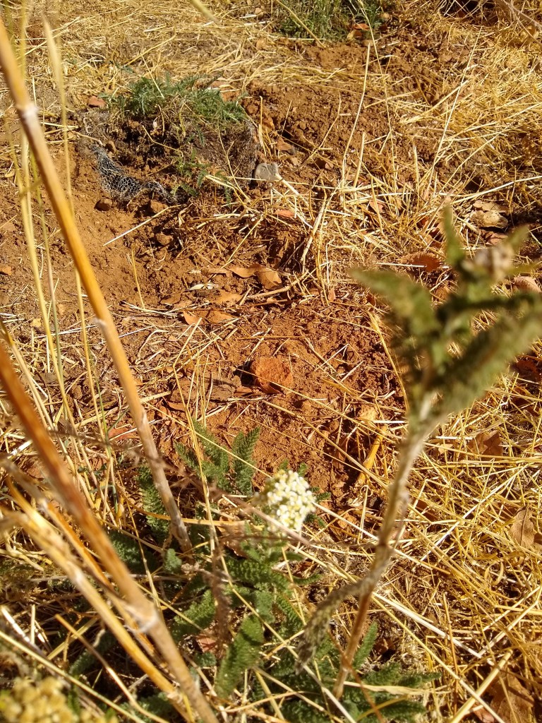 Any ongoing readers of this blog know I have a love-hate relationship with gophers. I love all animals and appreciate the loose dirt they create, which I have redeployed around the garden. However, I also hate the ongoing destruction they wrought on my plants. They have recently gotten smarter and tipped over small planters with their mounds and created small avalanches with their mounds into the gopher cage root protectors so they have a “land bridge” into the cage. Wow. Well, in an amazing twist of fate, an earthquake sent vibrations through the ground. All of the sudden, over a couple of days, I would see gophers just walking around above ground. This was probably the reason for the large great horned owl I saw flying around several nights in a row. I seized my opportunity, grabbed a shovel and gently moved three gophers from sensitive areas to gopher hole areas outside of my fence line about 200′ away. They are cute, and so vulnerable above ground – I had to give them a chance – so placed them near areas with lots of holes. I will probably regret my soft heart eventually. But, so far, I have not seen evidence that they returned to the areas close to the house.