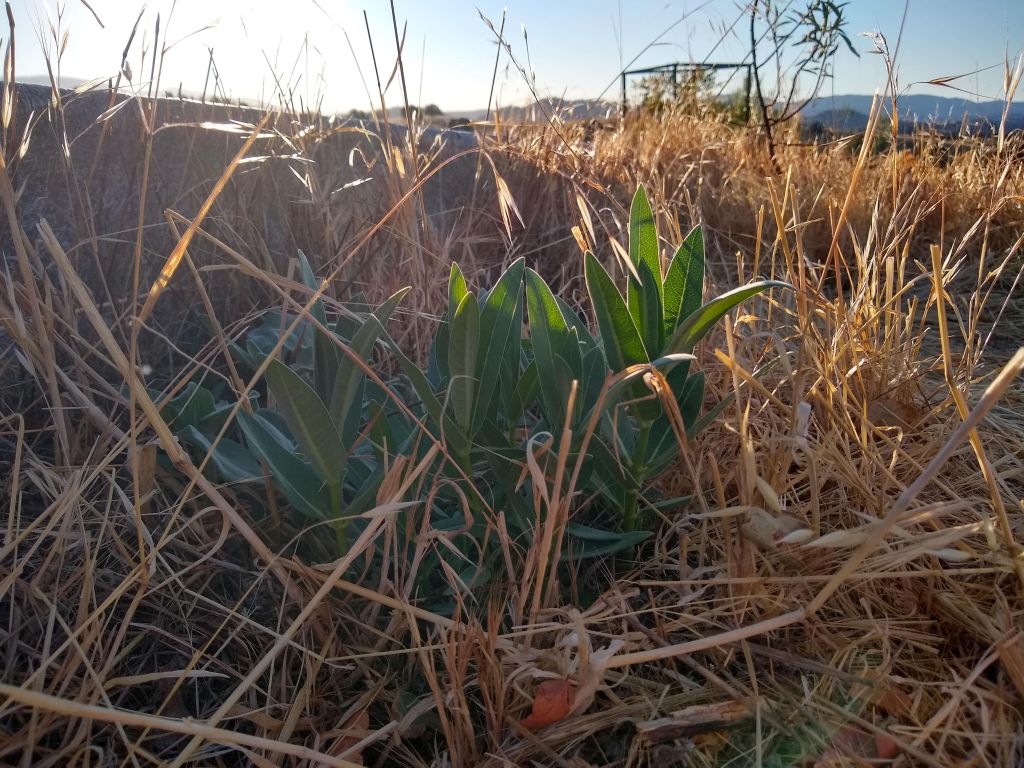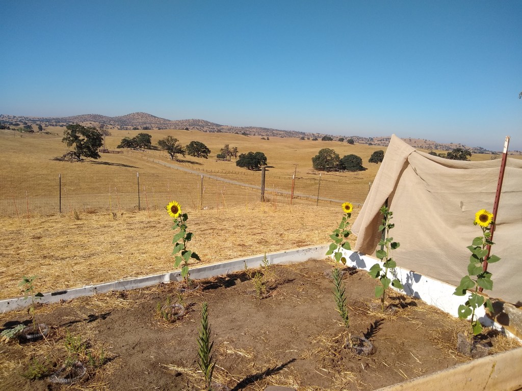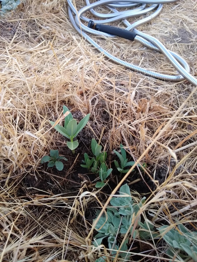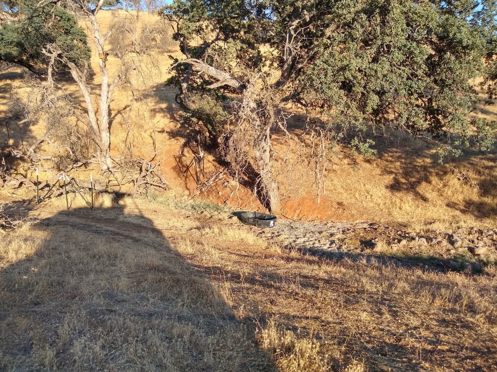 Tank 3 is now gone. Tank 1 has only 150 gallons. Tank 2 has about 1,600 gallons remaining. Watering will now require more time. I will need to pull water from Tank 2 daily to fill the trough adjacent to Tank 3 so that I can conveniently water Sites 1a-g. With the water situation, I have had to make some easy and some tough choices. Two months ago, before the heat wave, but knowing I would need to economize, I stopped watering the poppies, the small rose bush and seeded pots. Last month, I stopped watering the Xerces plants that never produced. I had thought that maybe there were some roots there that I could keep alive for next year. I also stopped watering Site 10 in the midsection of the ranch -the four willows and one mulefat. Two of the plants were grazed back, one dried up before I could get to it with water and one willow and one mulefat were continuing to do well with the existing moisture. They are likely dried up now too. I’ve not been back there to monitor. It has been too hot and not enough time in the evening. This month, I made the choice to stop watering what is left of the plants in Site 1 and Site 2 that were massacred by the grasshoppers. Again, my original rationale to continue watering was to keep the roots alive for next year. I think that was possibly a faulty thought for some of the plants, like the sages, elderberries and the maple trees. Once the hoppers got them before they had enough time to strongly root, they were likely done. I also let the one resilient milkweed from the original North Plot test site grow on its own without water from me. It did not make it.