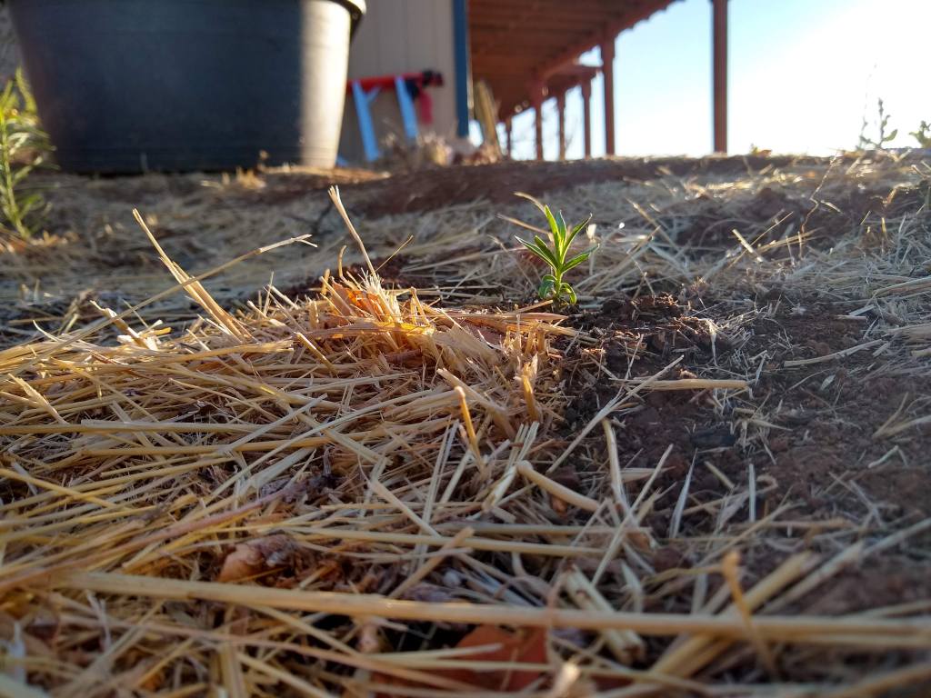 New narrowleaf sprouts after being eaten twice in the raised bed