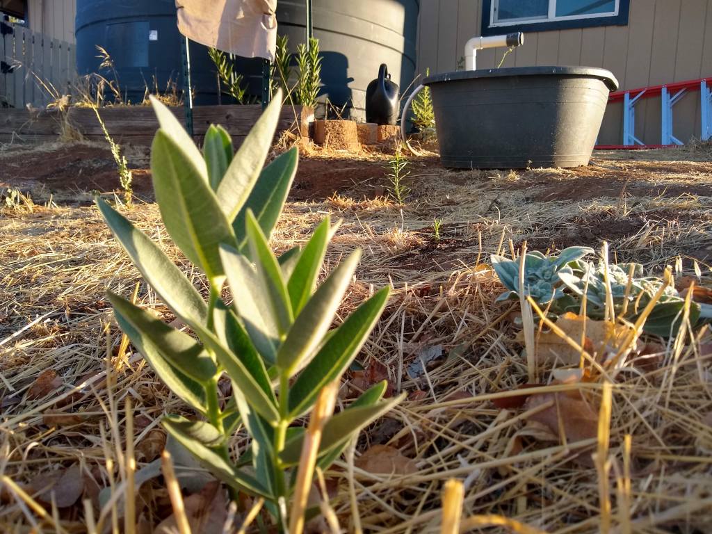 Showy Milkweed in raised bed back and bigger after being eaten twice by gophers
