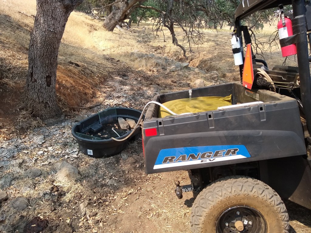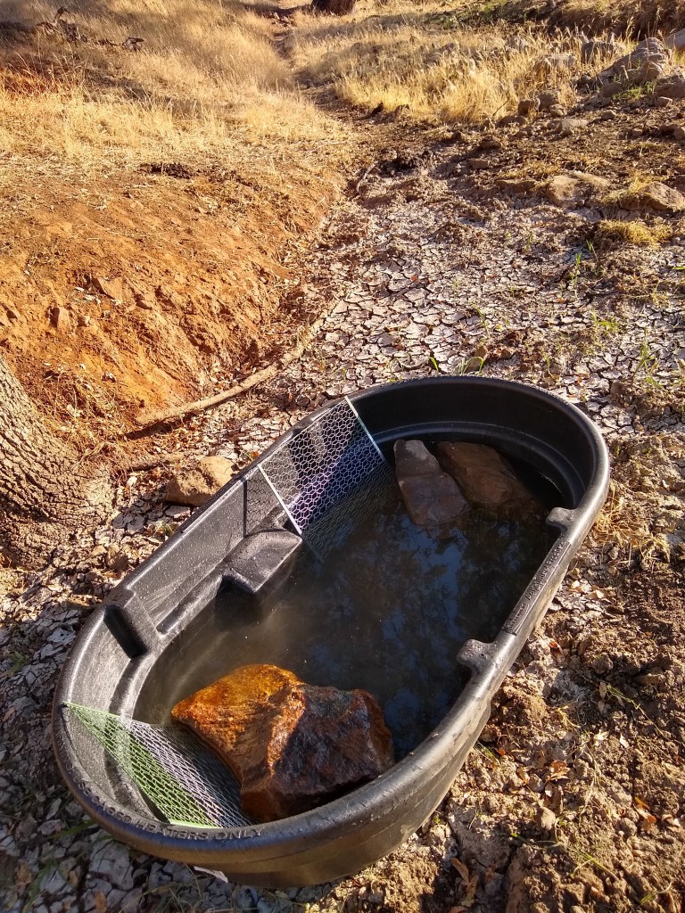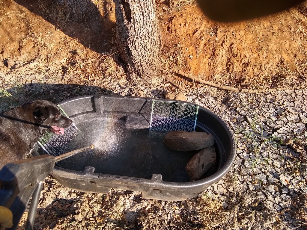 Adding water to one of the wildlife troughs. The birds use this all the time.