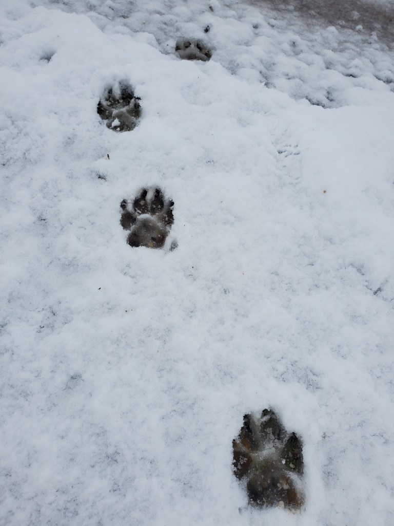 Poor David. I screamed. “David, it snowed! It snowed! Look darling! Look!” He fumbled for his glasses, grabbed mine, realized his mistake, then searched again for his. “D, do you see it?! There has to be almost three inches on the fences!” David finally with his bearings – and his own glasses – let out an audible gulp of air. “Whoa. That’s a lot.”