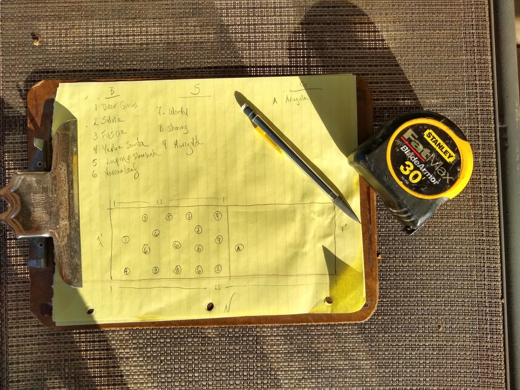Everything was planted with the exception of the coyote mint, yarrow and one aster. They are all located close to the romneya coulteri further away from the plots and are not pictured.