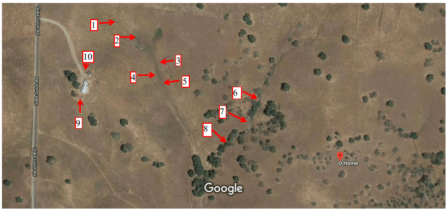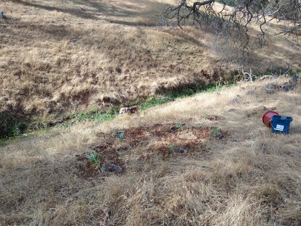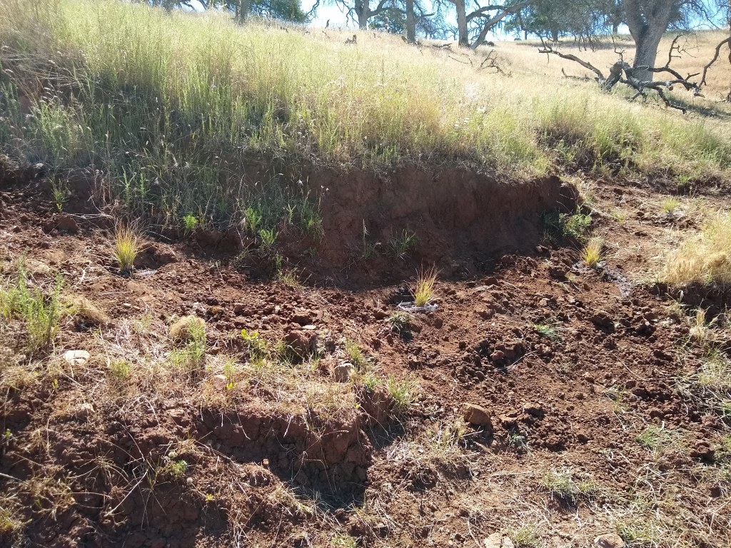 Mother Nature has been kind to me. When I’ve had to plant or water, she has kept the temperatures cool. Last week, I planted my first site along the Spring Creek. This makes two of ten sites completed for my CA RCD grant. I am making adjustments in each site to see if one thing works better than another. Site 8 is located near a creek with some shade for a portion of the day. The soils stay moist for longer. Contrast this to Site 10, near the original South Plot, which gets sun nearly all day and is located on the top of a hill. I will be monitoring which species perform the best in those conditions.