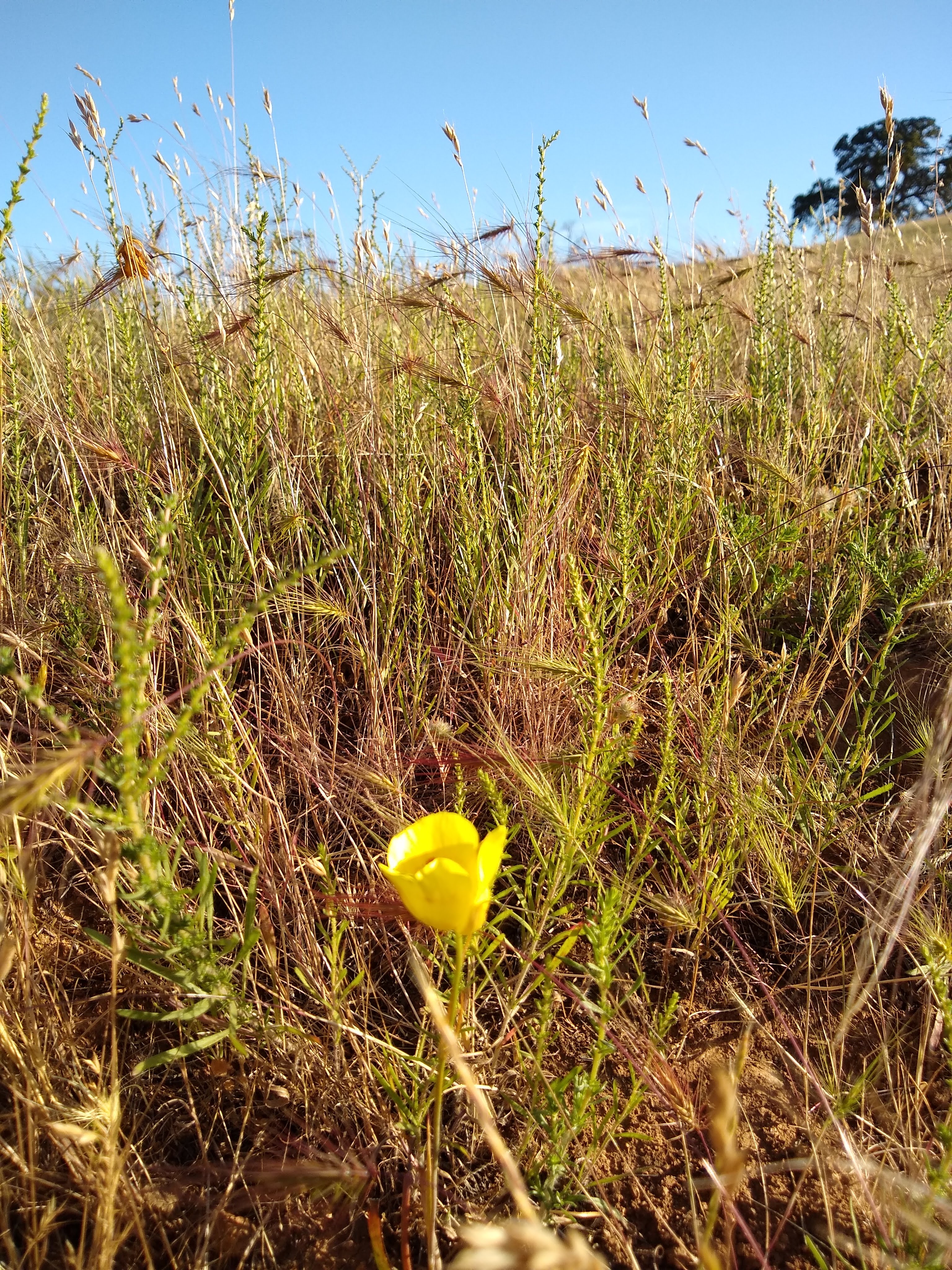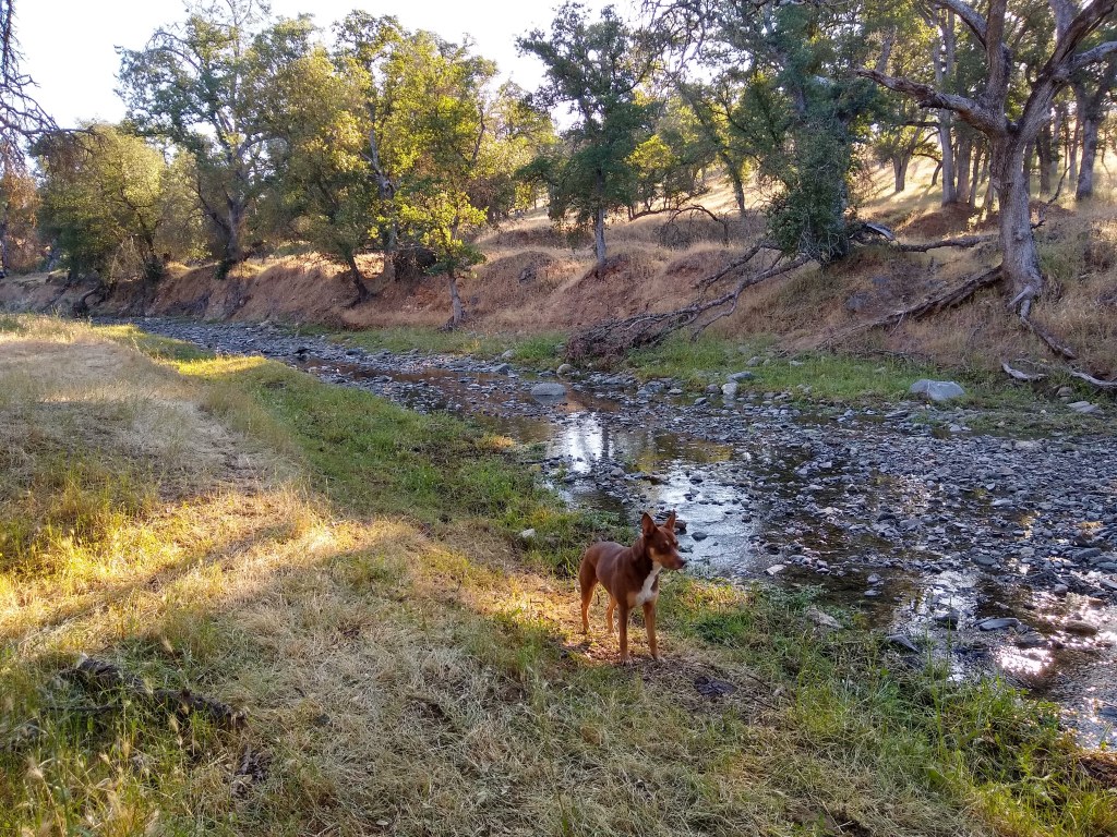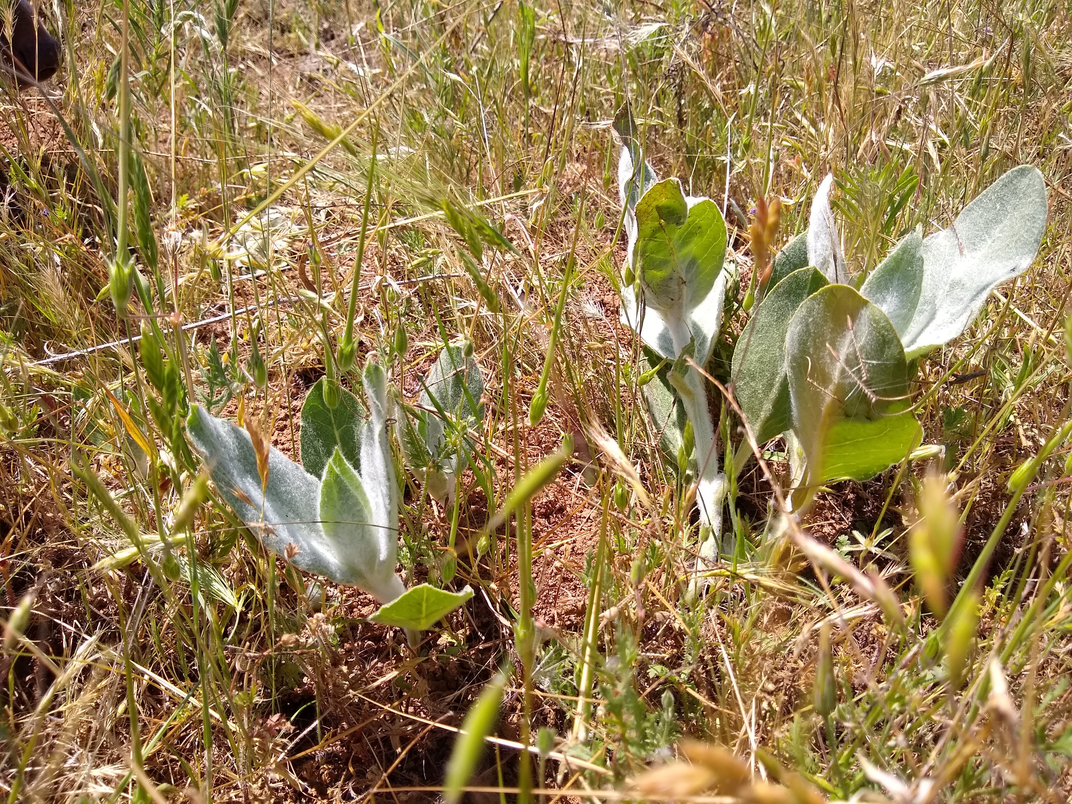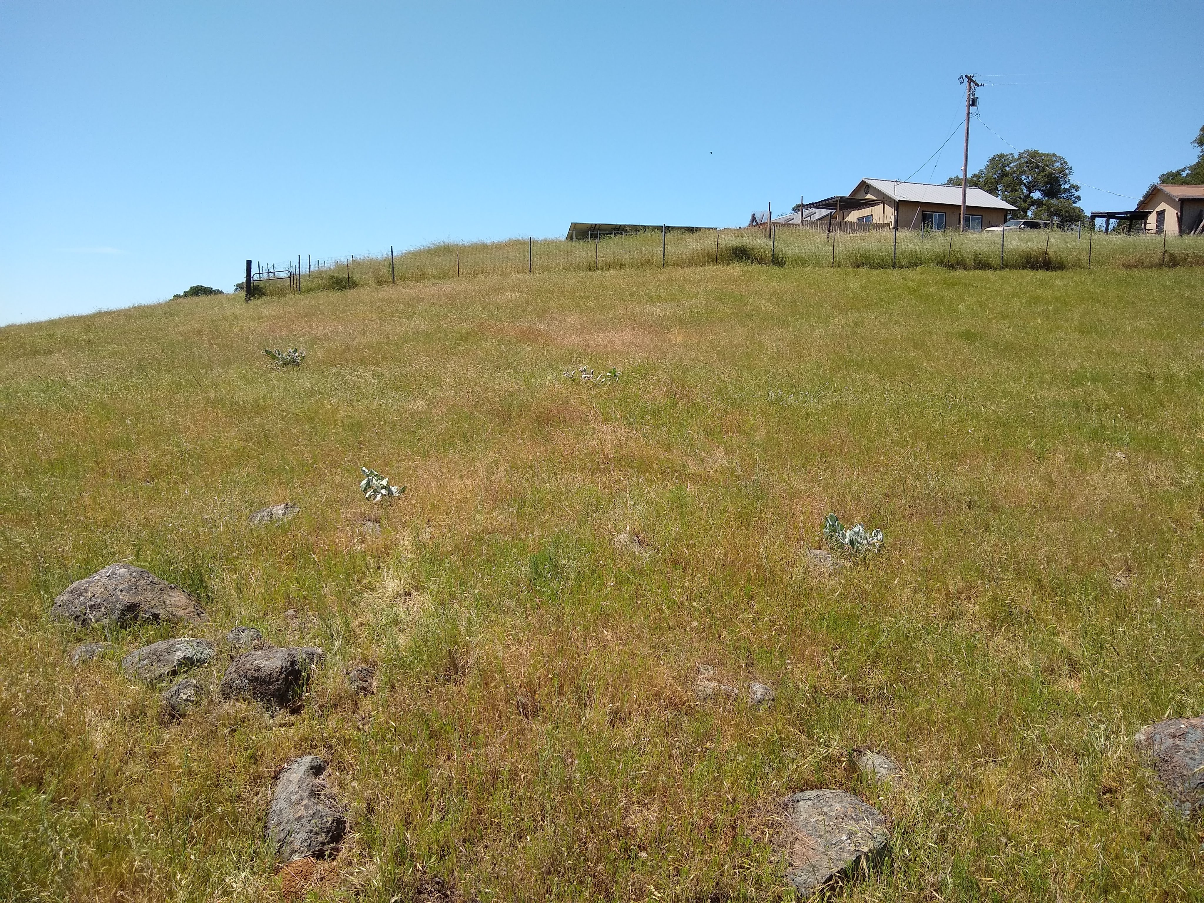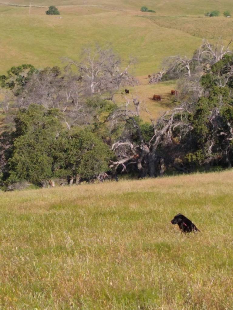 Millie and I set off for the mid part of the ranch. We got distracted by the south facing section of the hill that had a. californica on the west slope. We hiked up about 1000 feet, and did not see any. This put us on a different path than anticipated. We had intended to visit a hill on the east side of Odom Creek. We continued down the east slope of the hill toward our destination. Although we started our adventure at 6:30am when the sky was filled with moist clouds, by 7:30am, the clouds had broken up and the sun was out. The temperature was beginning to get hot. We made it to the base of the hill and decided not to climb it. I did look at the rocky areas for signs of the silvery large leaves, but did not see any. We will need to return and investigate more fully. We also have another hill on the neighbor’s side of the ranch that might be conducive to a. californica tastes. We will explore there too. Millie and I returned home “empty handed” but better for the extraordinarily beautiful, if not rigorous, walk.