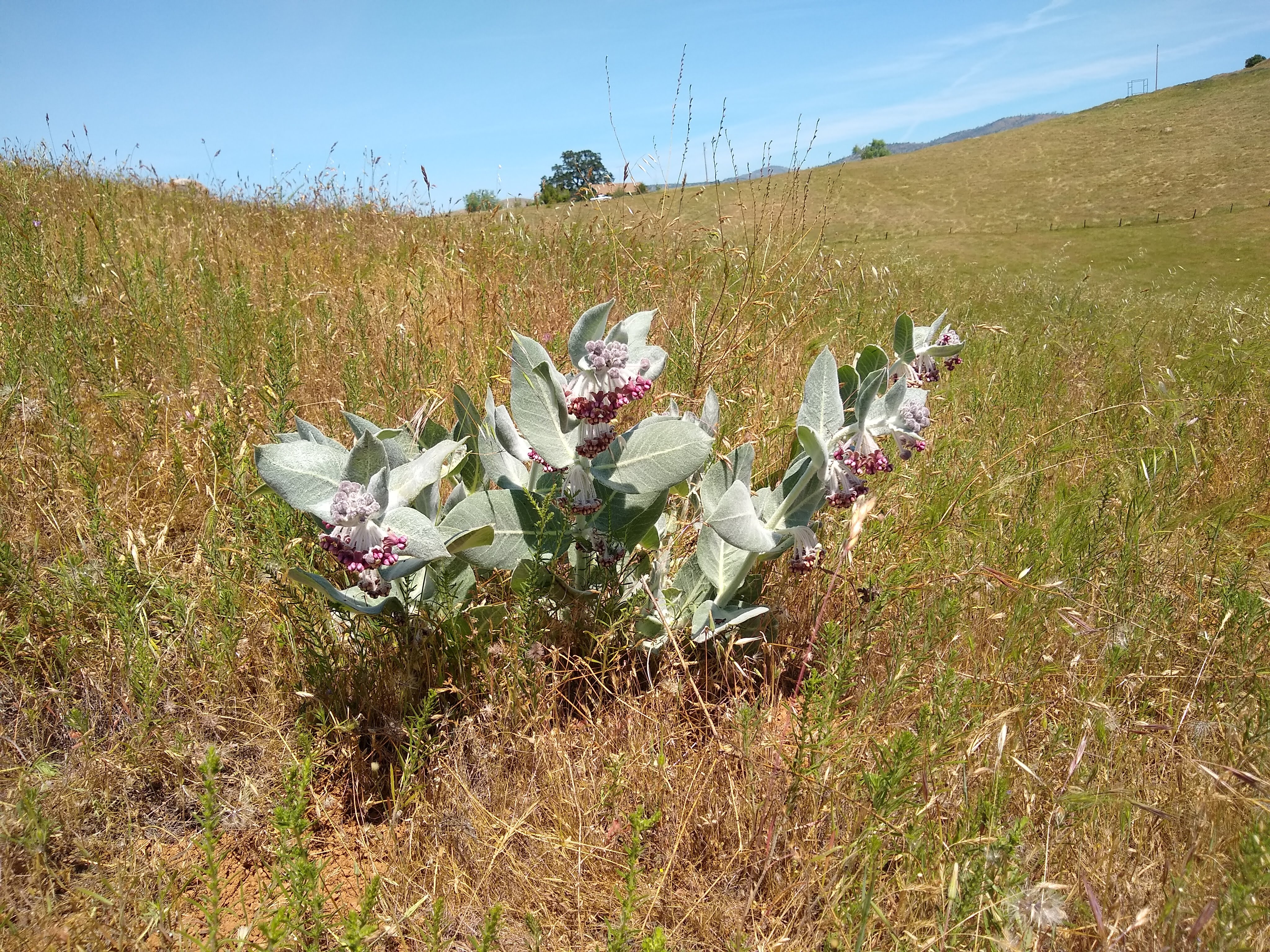 As I walked back home, I noticed a very unique plant that had previously been obscured by the grass, but was now visible after grazing. I took a picture to identify it. Yesterday, I spoke with Hillary Sardinas, Monarch Conservation Manager at the State Resource Conservation District (RCD) and Melinda Barrett, our local RCD director about the grant we had just secured. Hillary shared an article she had co-written. It happened to be about Asclepias californica – the rare California native milkweed that is the earliest to emerge of the milkweeds. It plays a critical role in providing habitat early in the monarchs’ migration after overwintering. Fortunately, there was a photo. It looked exactly like the unique plant I saw not too far from my home! I ran down the hill to the plant to double check. YES! It was indeed a. californica. A miracle occurred.