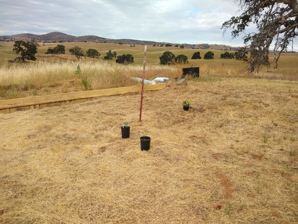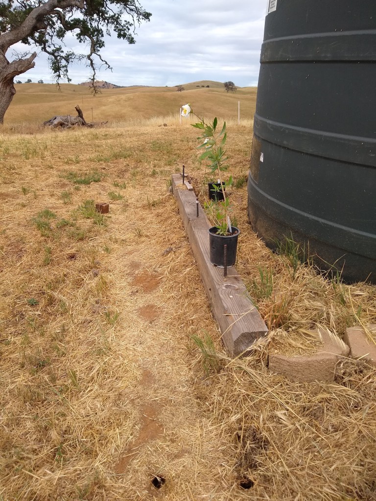A few days after planting Site 8, I hiked over to check on the plants. All were well except the yerba santa. She was very healthy in the pot, but may have not liked the transfer or dried out too soon in the four day heat wave we had. I found her still firm but leaves limp.