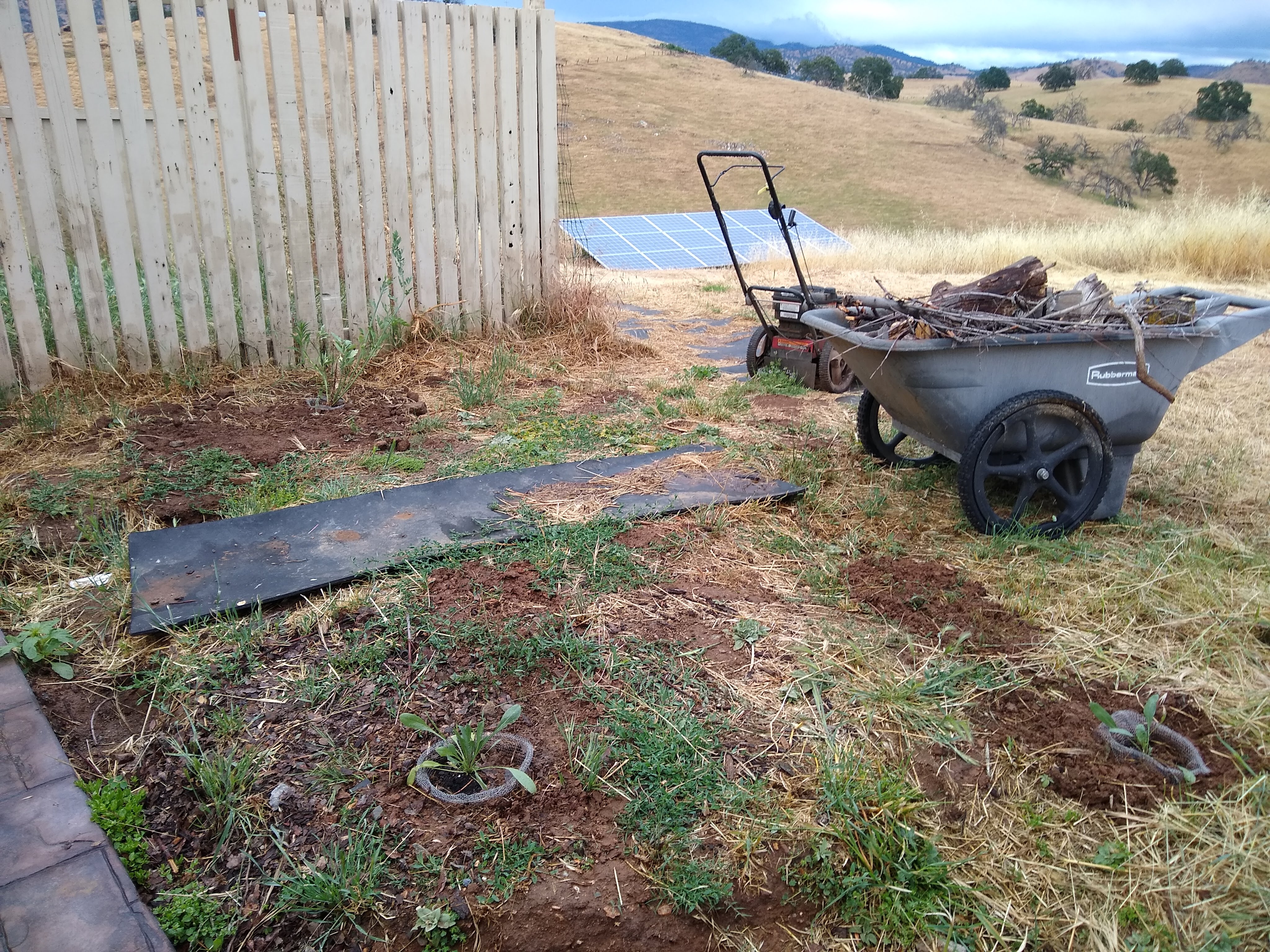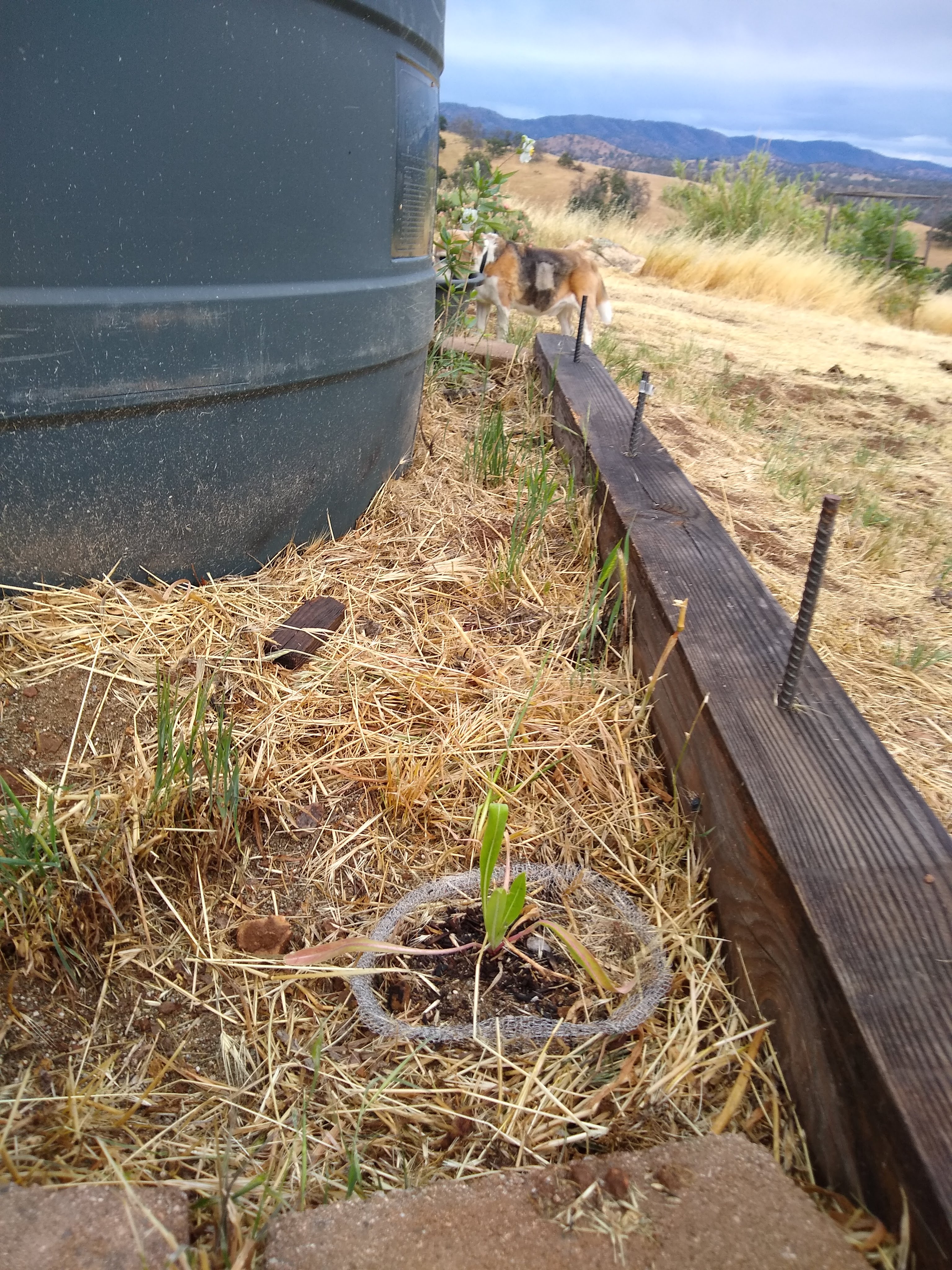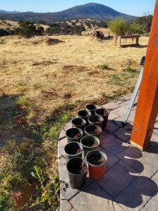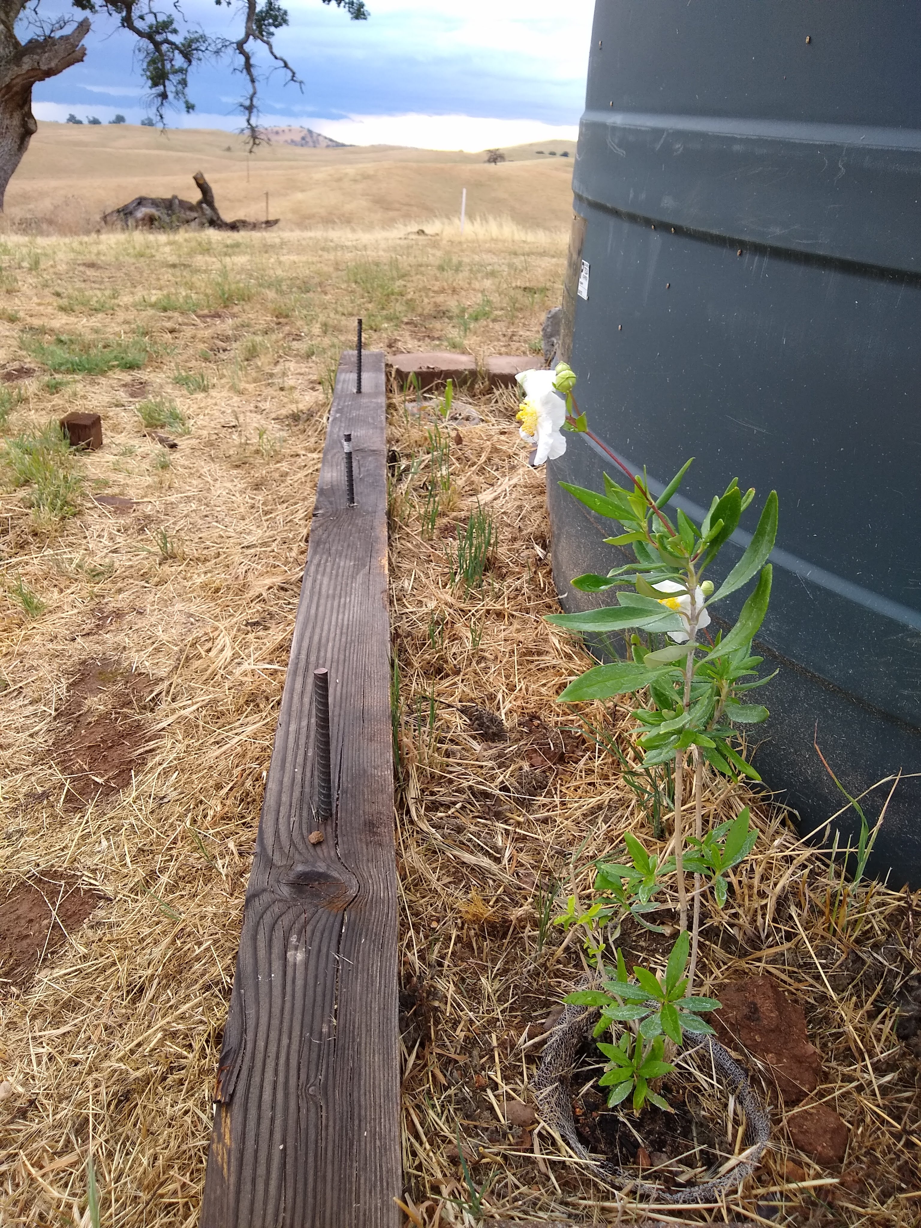 Tonight ended with a late season rain storm. Thunder, lightening, the gorgeous smell of tar weed and formerly dry soil are filling the house through the open windows. It is unbelievable. I have already taken down the rain water catchment system – although it would only make a difference for the vessel on the south side of the house since that is the only unit from which water has been used. It is still nice. The troughs and rain barrel will fill again. This allows for even more water to use in irrigating the pants. What a beautiful day.