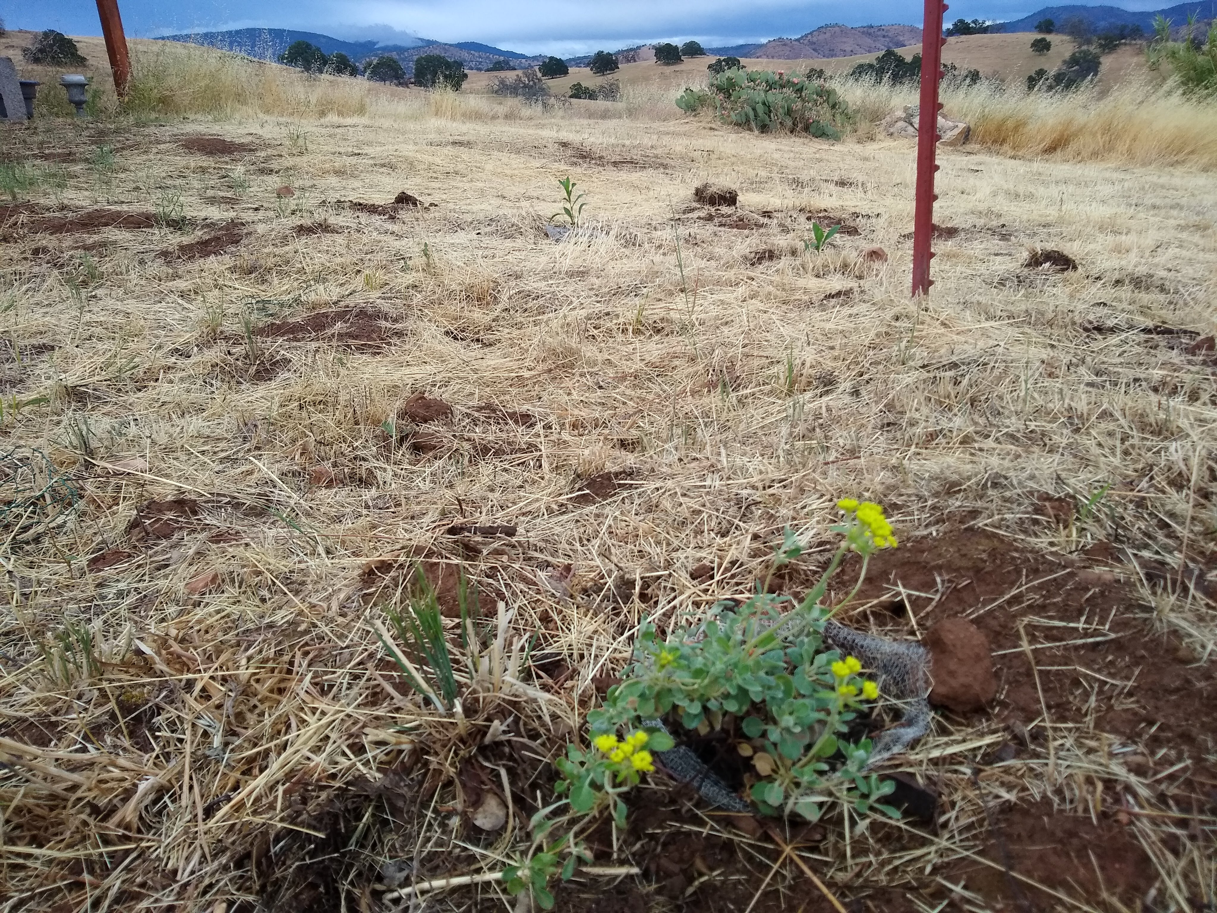 2. Some creature is still snipping off the tops of some plants. We lost a showy milkweed in the planter box and the top of the sulfur buckwheat. There is a chance that the roots established. Maybe it will come back like the milkweed in the test plots.