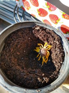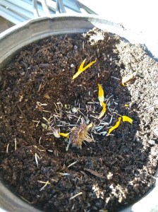 I spent the morning re-potting the marigolds. I also started the sunflower seed heads I harvested last year. This should be about the time they need to start since those bushes began to flower in September/October.