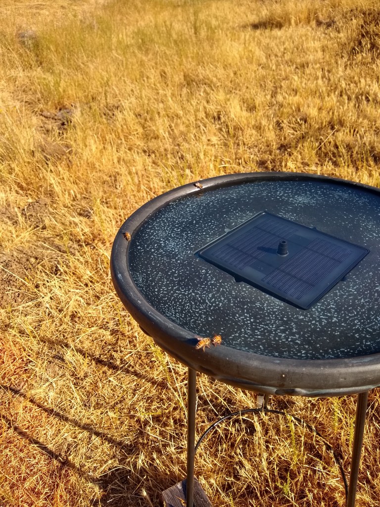 • I’ve never seen 30+ bees converging on a bird bath to drink – anytime and all the time.
