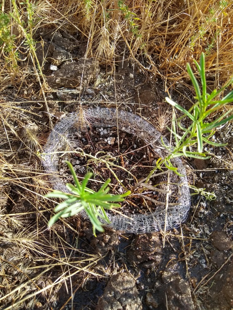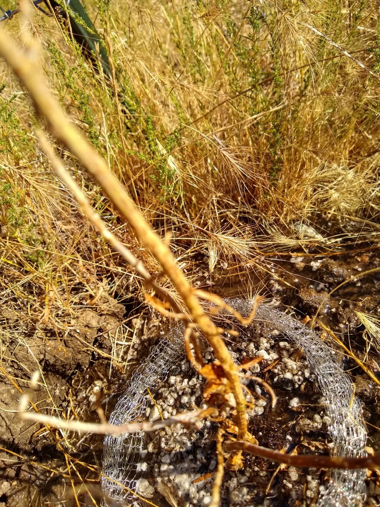 Success at the arroyo is mixed. This seems to be a place where a variety of spiders and bugs live – which is wonderful – but not for the red bud. A large spider moved into the redbud gopher basket. There was one hole, then two, and now three. How do I know it is a spider hole? I saw a very large spider come out to check out why there was water entering its hole. There was nothing I could do to save the redbud. Over the weeks, it died. I hate to think what happened to its roots. RIP redbud. You looked so beautiful.