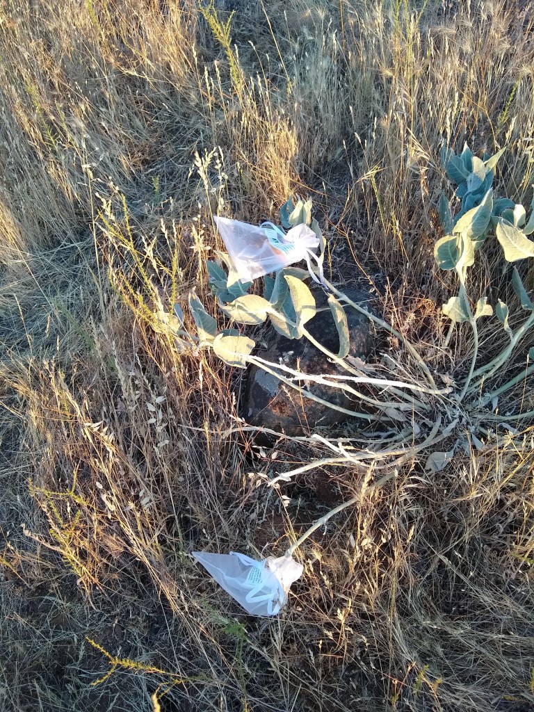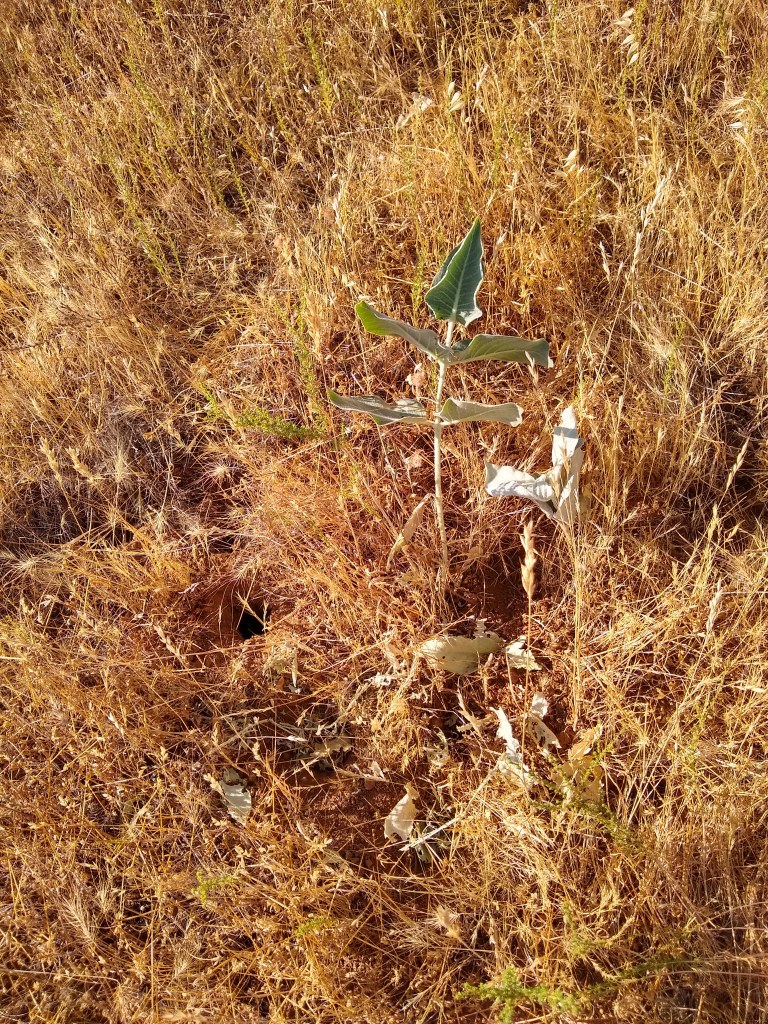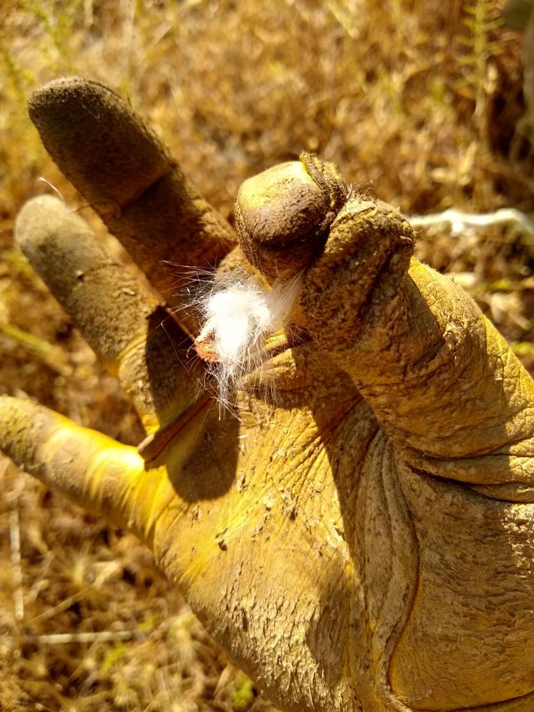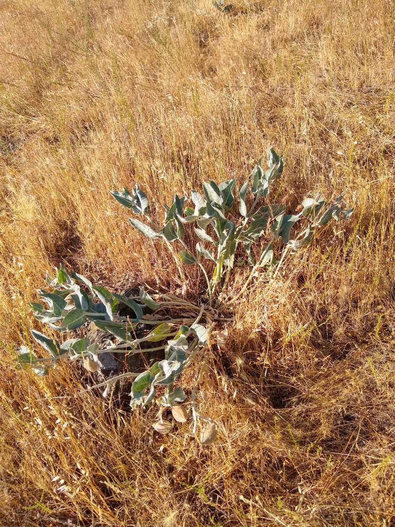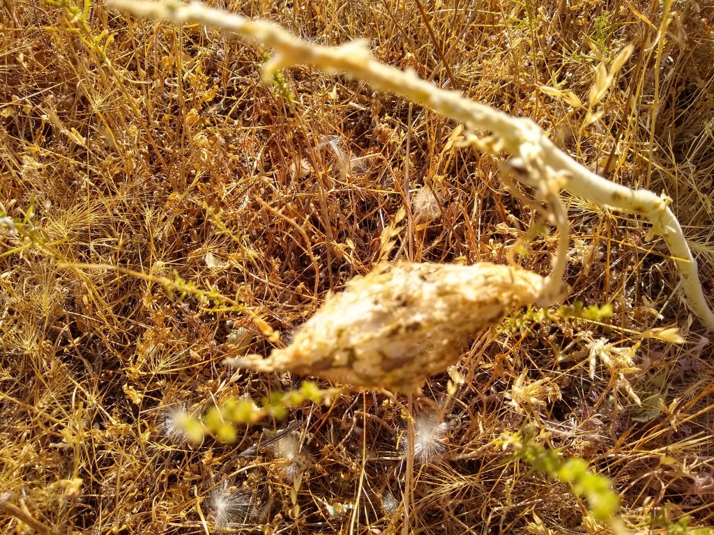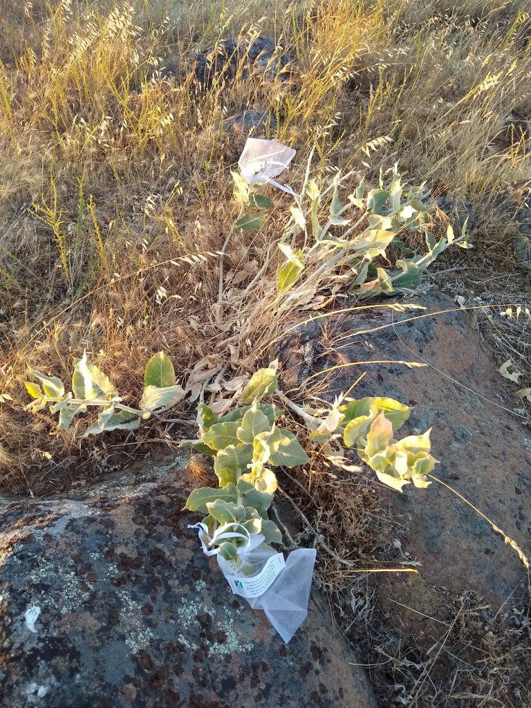 The A. Californica is nearly gone. Most plants are completely removed from the landscape. Some are shriveled stalks laying on the ground. The grasshoppers leave almost nothing behind. Fortunately, the seedpods still remain protected. I check them every morning and evening looking for signs of breach, which would initiate a rapid cutting of all pods to save them for propagation. I am happy to report that the bags are still holding them off. The longer, the better so the pods can get as much nutrients as possible for the seeds to mature. Even though the pods I took early have opened and revealed healthy seeds, it is best to give the pods as much of what nature intended as possible.