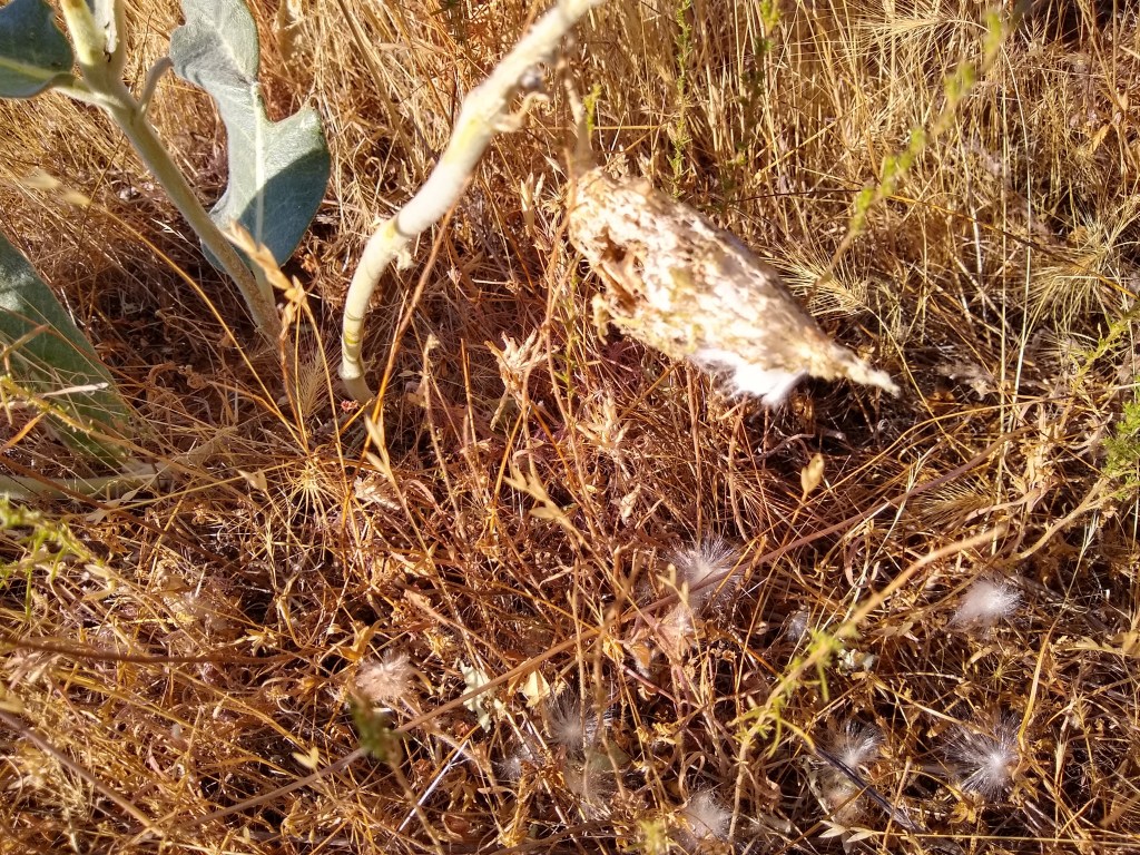 Although the roots of A. Californica will resprout if the conditions are right, the seeds allow for more rapid increase in the number of plants. If I let the grasshoppers eat the pods, I loose the chance of this generation of seeds spreading. My plan is to spread the seeds after the grasshoppers abate. I will also give some to Ron Allen, my native plant hook up and owner of Mariposa Native Plants, who I affectionately refer to as the “Milkweed Whisperer”, to germinate. He has the amazing ability to bring milkweed seeds to germination – not an easy task.