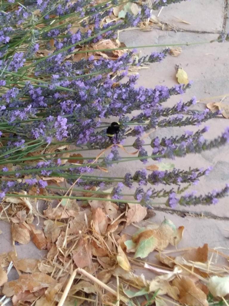 A big healthy bumble bee enjoys the lavender