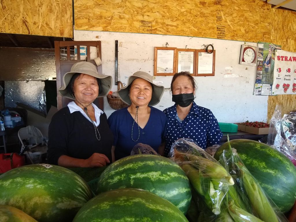 Kae Sateurn (photographed center with her visiting sisters) is a farmer in Merced County. She has agreed to begin with one plant to help the butterflies.