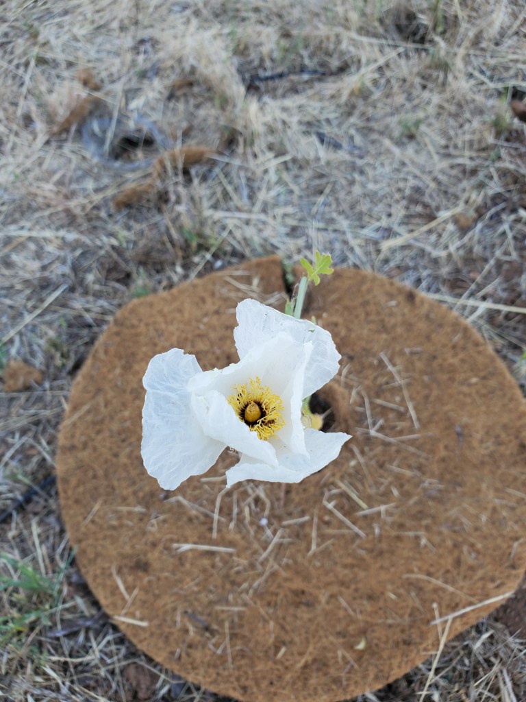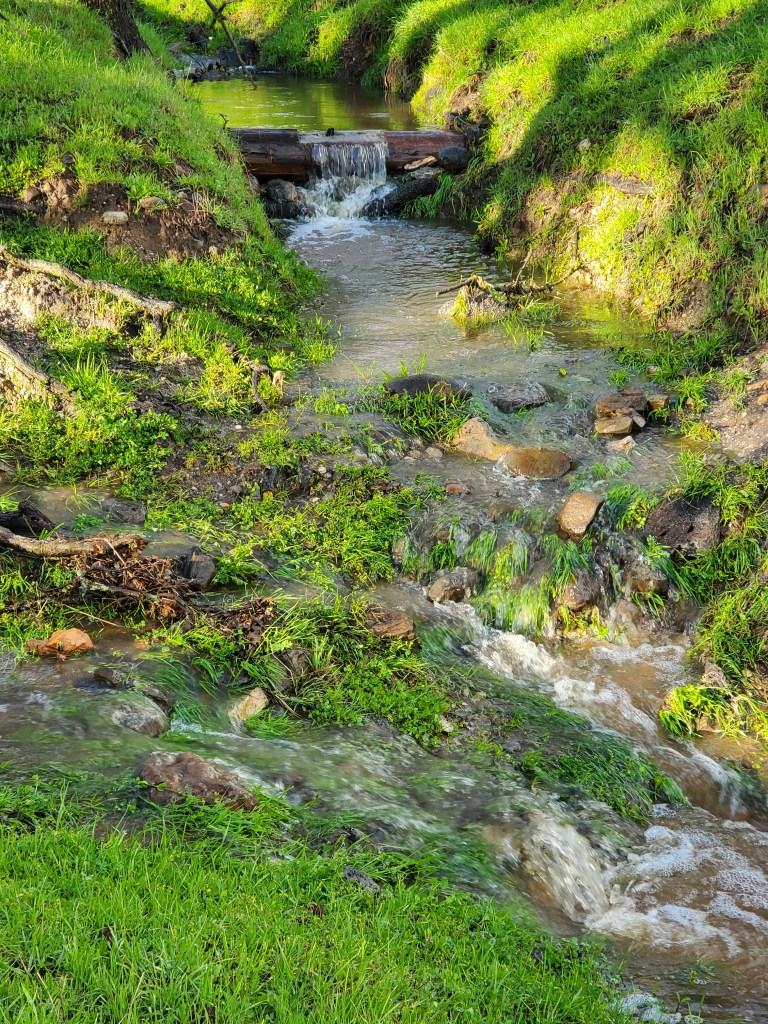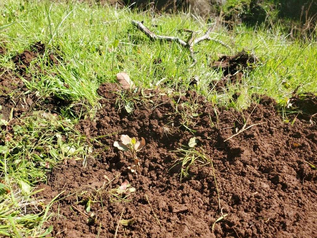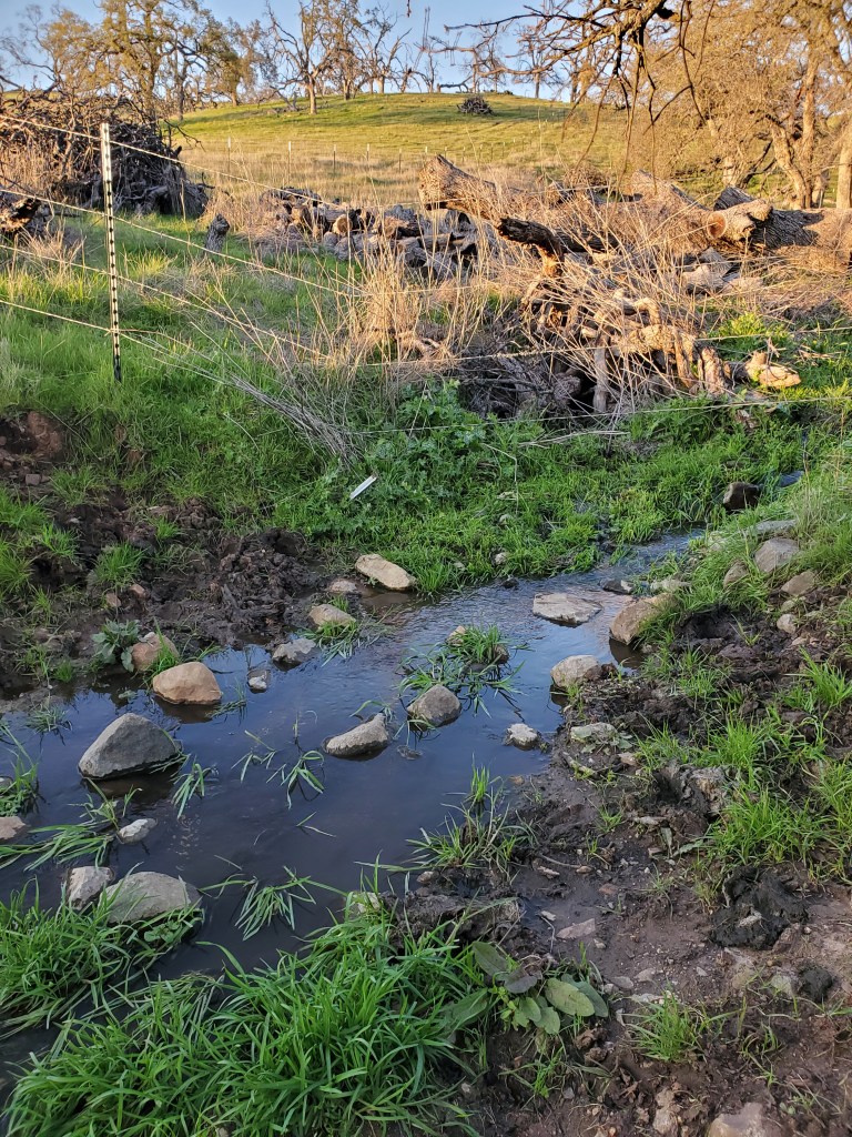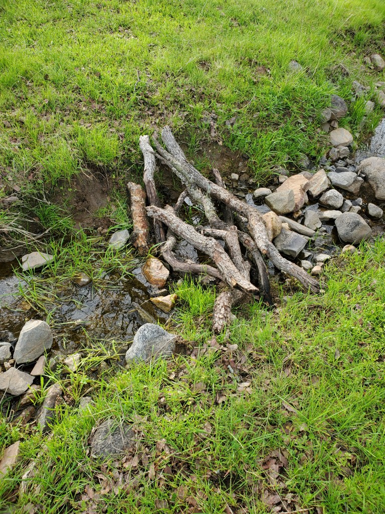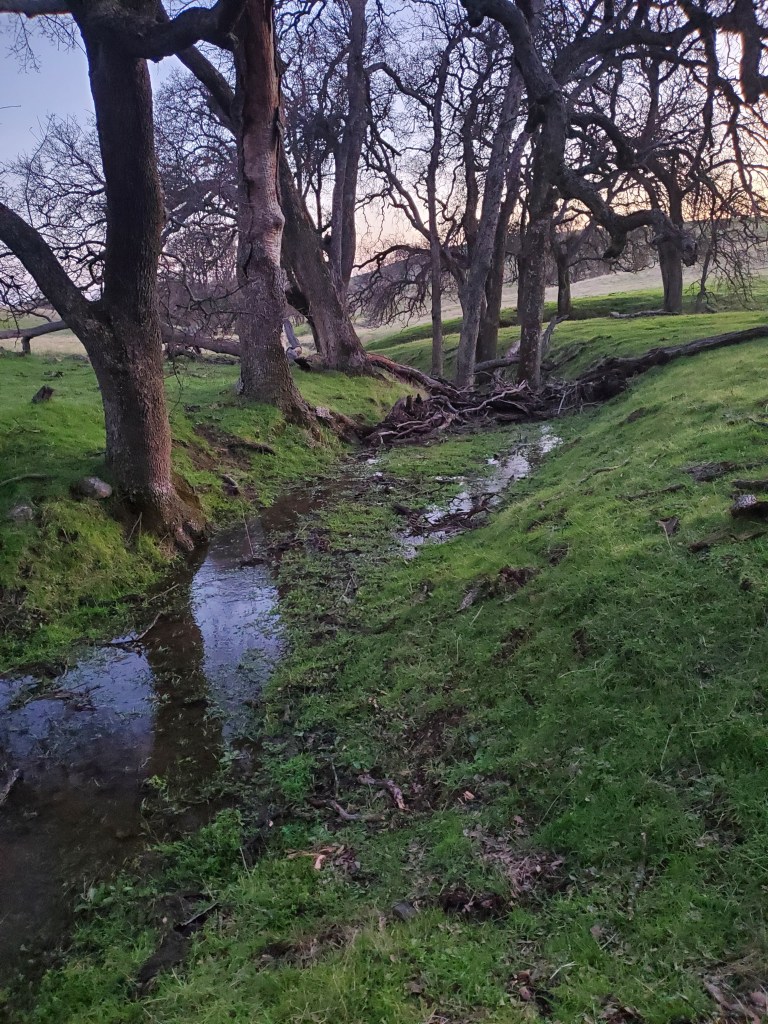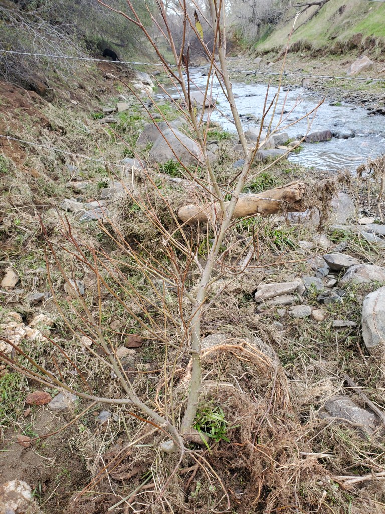 With my thumb still busted, wrist, knuckles and ankles still sprained, my job has been copilot, holding the water bucket with my good hand, carefully walking over to the tree, watering and removing the burlap and coir pad. David was doing everything else. As we went to each tree, I held my breath as I lifted the burlap shade cover, hoping I would see the healthy seedlings I had watered just 6 days prior. The two upstream on the Spring Creek…they looked great. I breathed out. The one by the lower pastures planted into the old dead oak, I lifted the cover, mostly eaten. There was one green leaf left. I’ll take it. Watered and screened. The discovery was unsettling. I became nervous for the others.