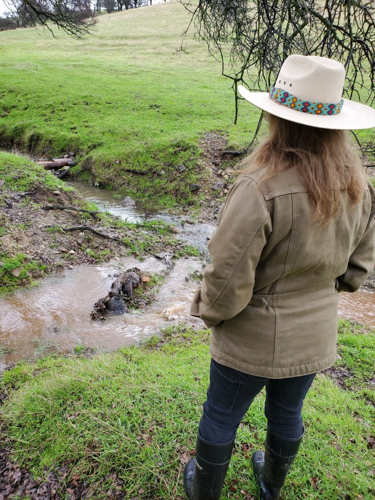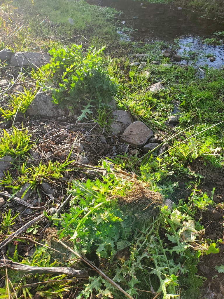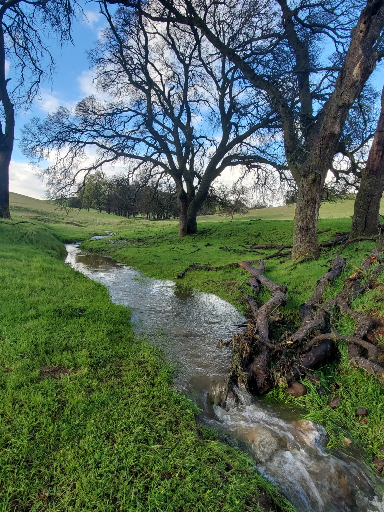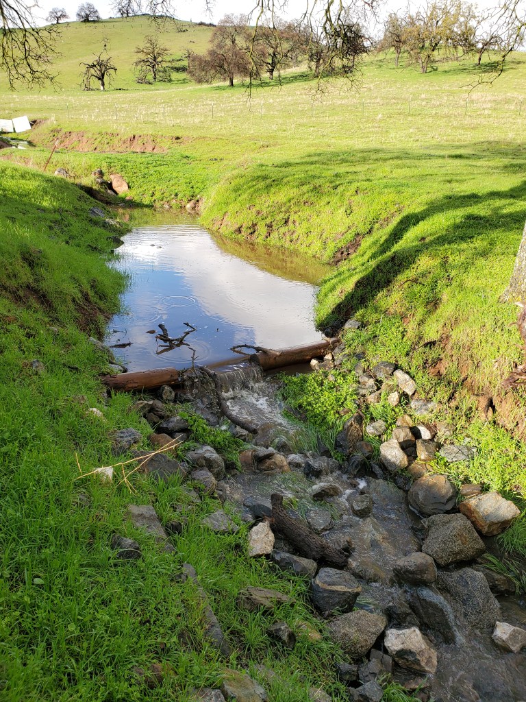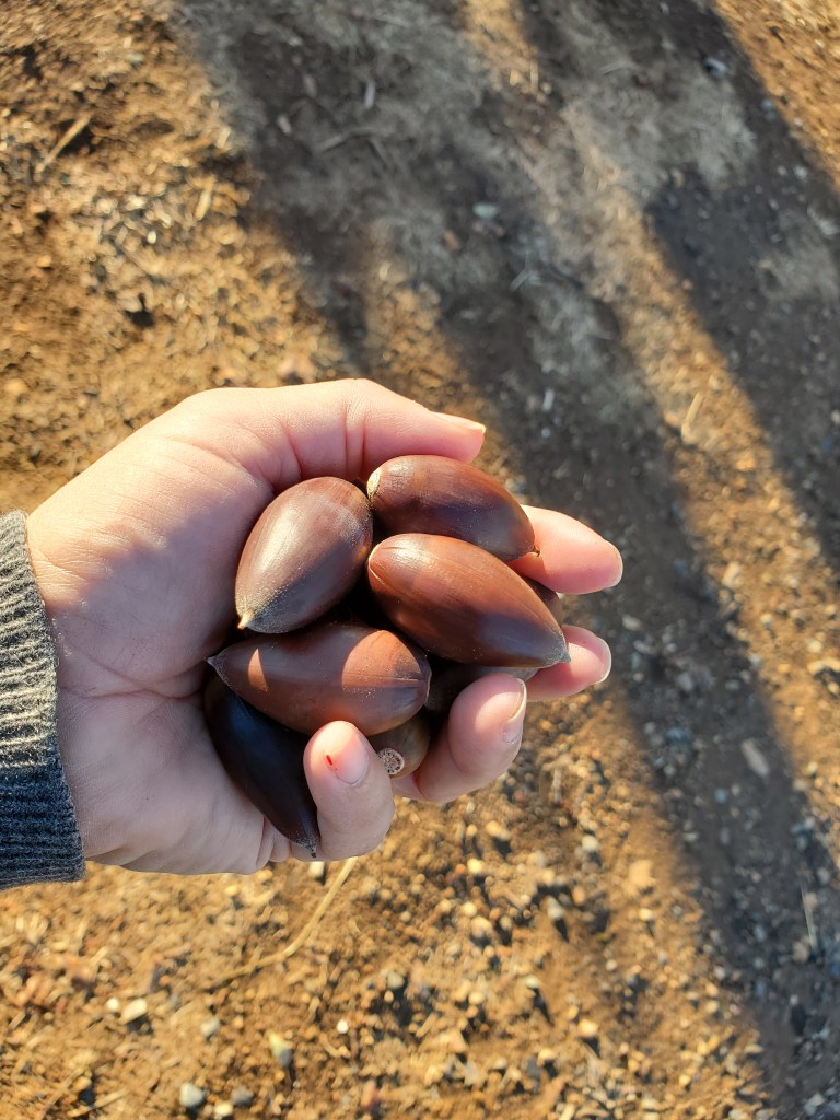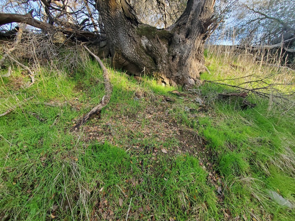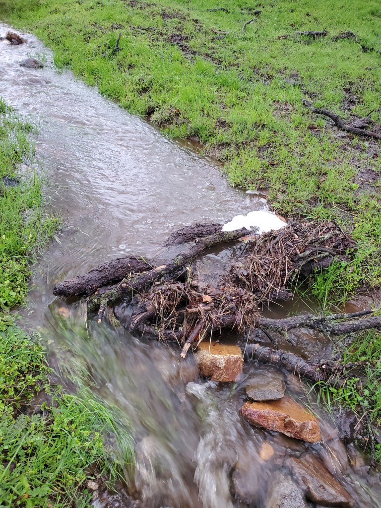 With my thumb still busted, wrist, knuckles and ankles still sprained, my job has been copilot, holding the water bucket with my good hand, carefully walking over to the tree, watering and removing the burlap and coir pad. David was doing everything else. As we went to each tree, I held my breath as I lifted the burlap shade cover, hoping I would see the healthy seedlings I had watered just 6 days prior. The two upstream on the Spring Creek…they looked great. I breathed out. The one by the lower pastures planted into the old dead oak, I lifted the cover, mostly eaten. There was one green leaf left. I’ll take it. Watered and screened. The discovery was unsettling. I became nervous for the others.