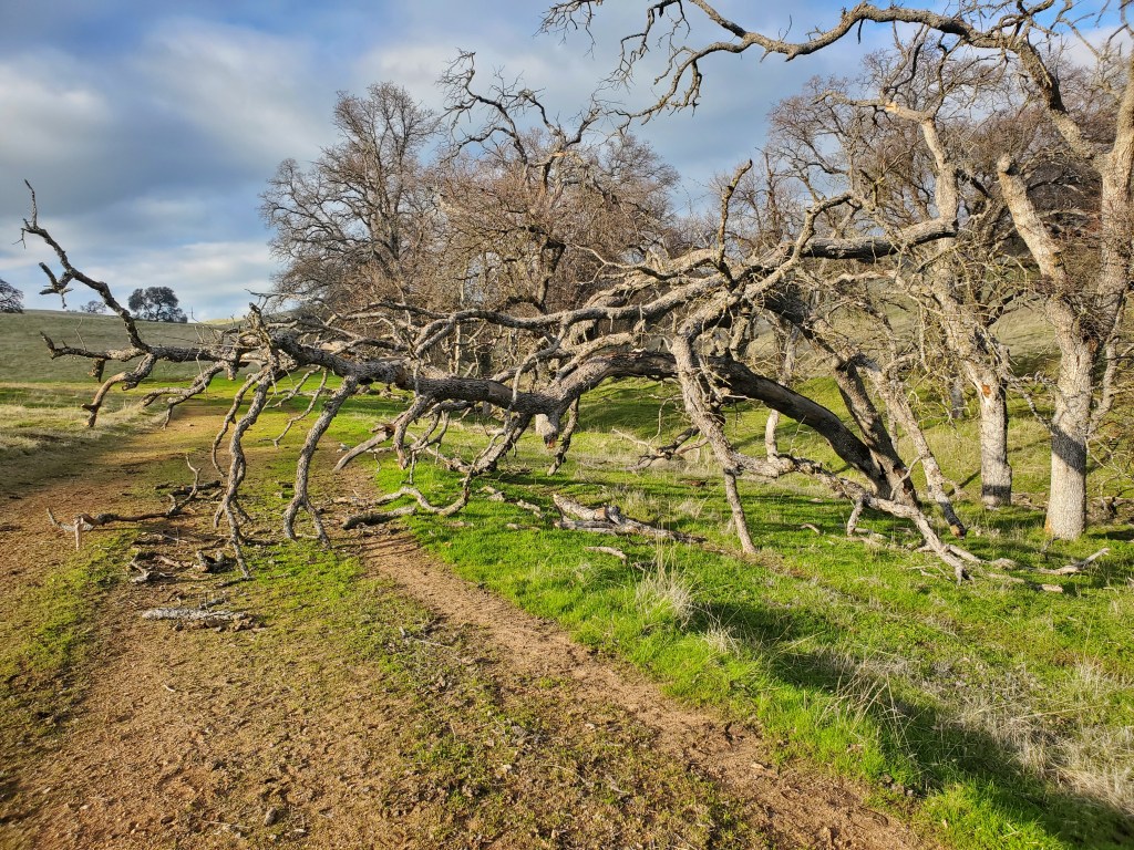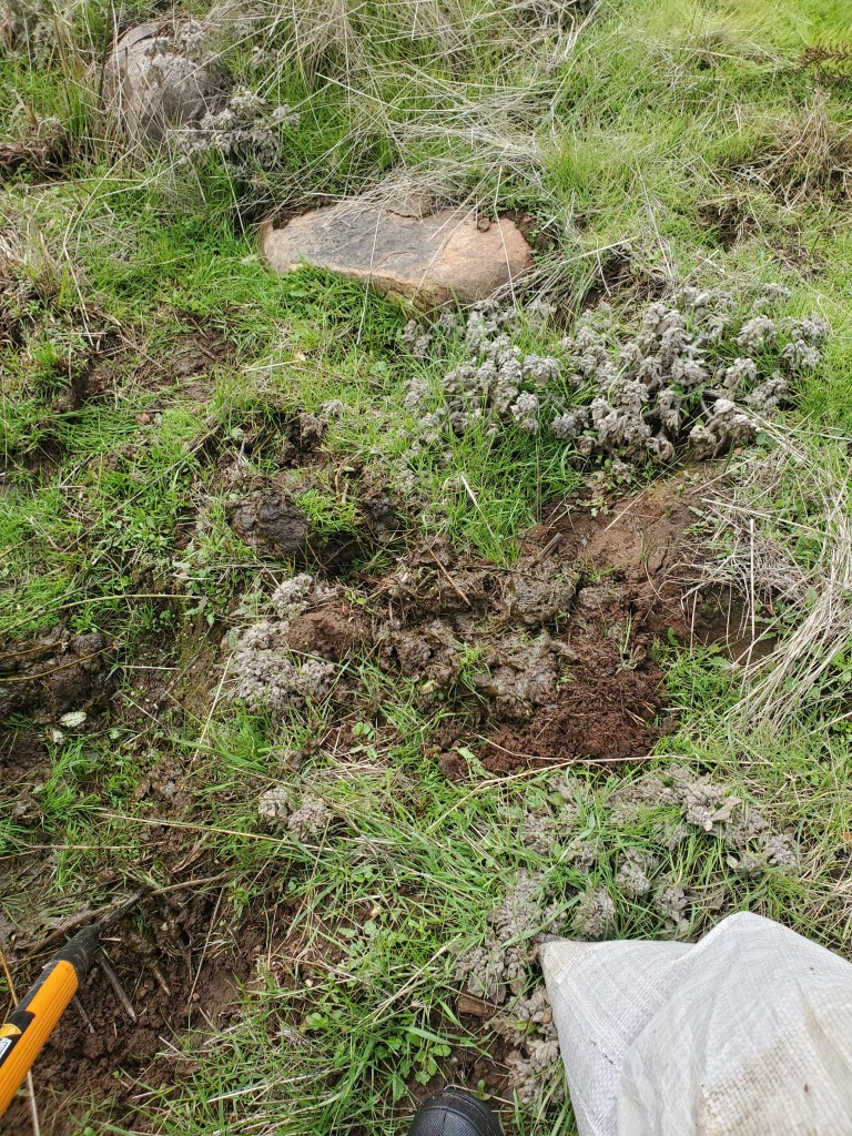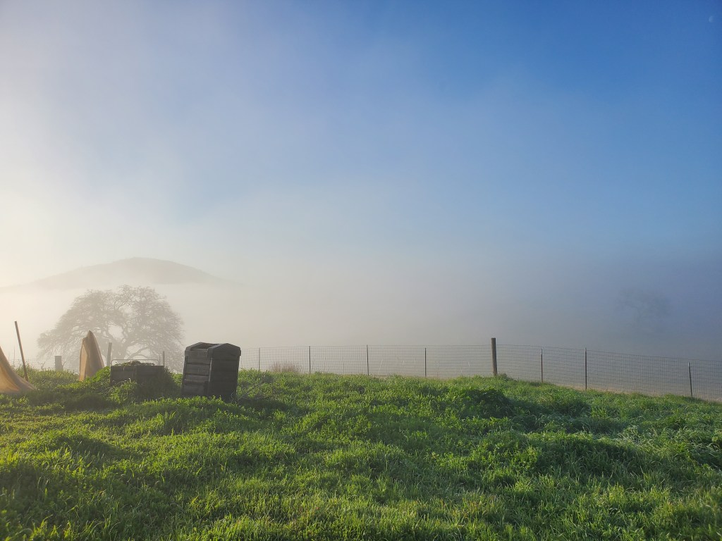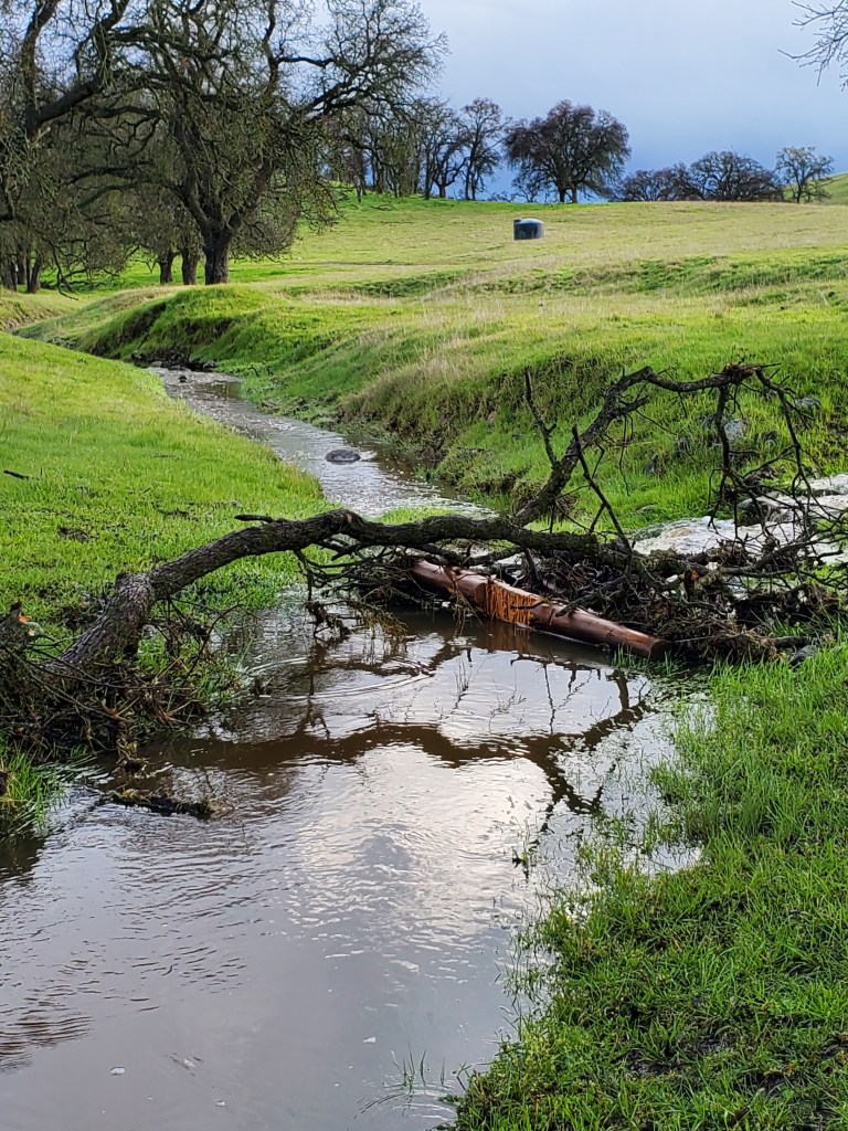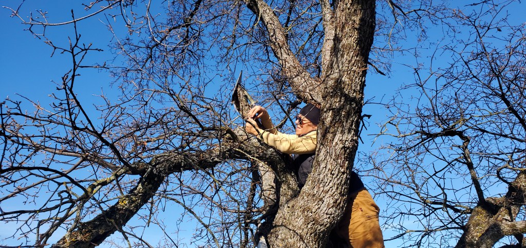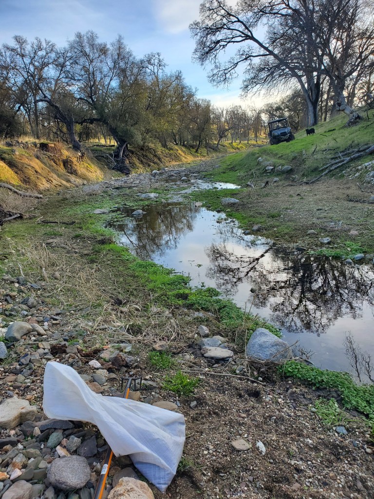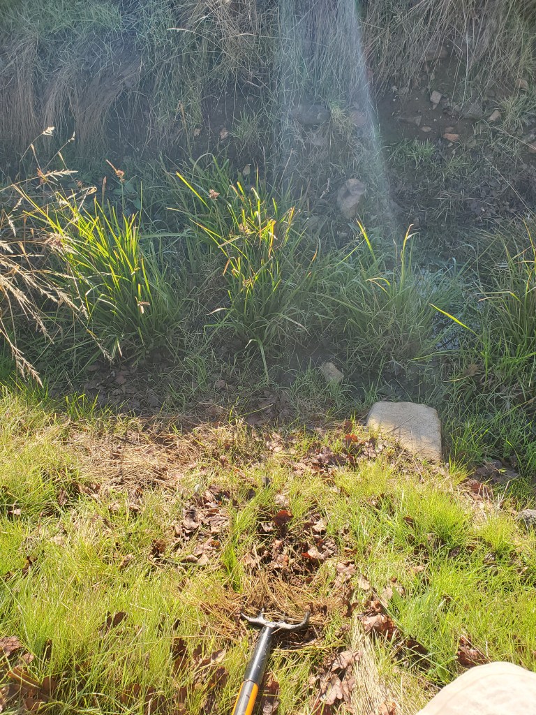 With my thumb still busted, wrist, knuckles and ankles still sprained, my job has been copilot, holding the water bucket with my good hand, carefully walking over to the tree, watering and removing the burlap and coir pad. David was doing everything else. As we went to each tree, I held my breath as I lifted the burlap shade cover, hoping I would see the healthy seedlings I had watered just 6 days prior. The two upstream on the Spring Creek…they looked great. I breathed out. The one by the lower pastures planted into the old dead oak, I lifted the cover, mostly eaten. There was one green leaf left. I’ll take it. Watered and screened. The discovery was unsettling. I became nervous for the others.