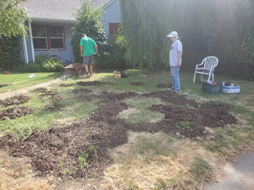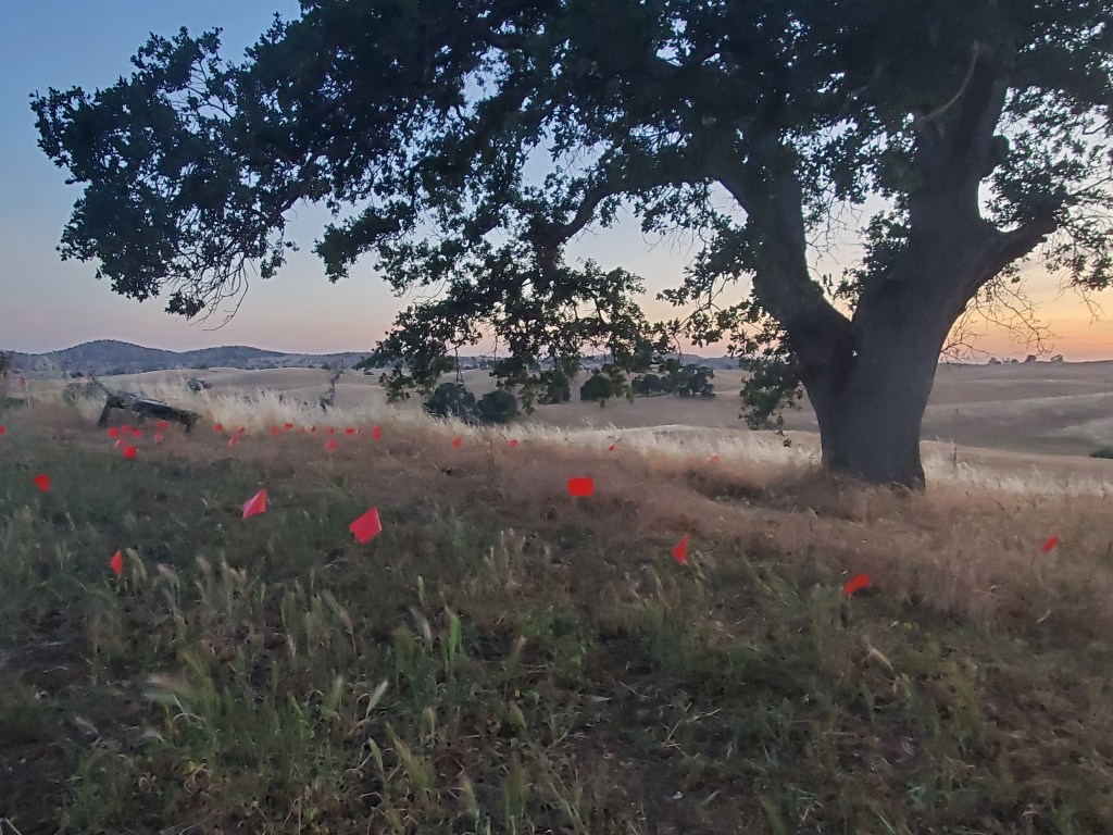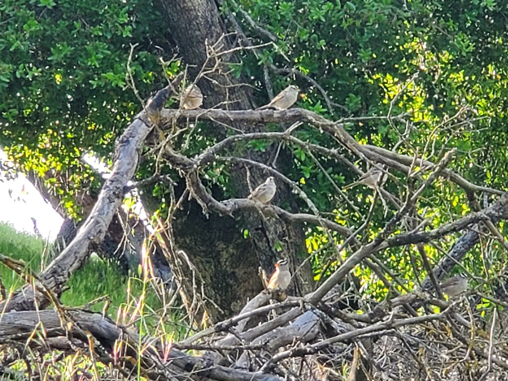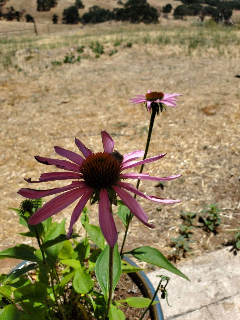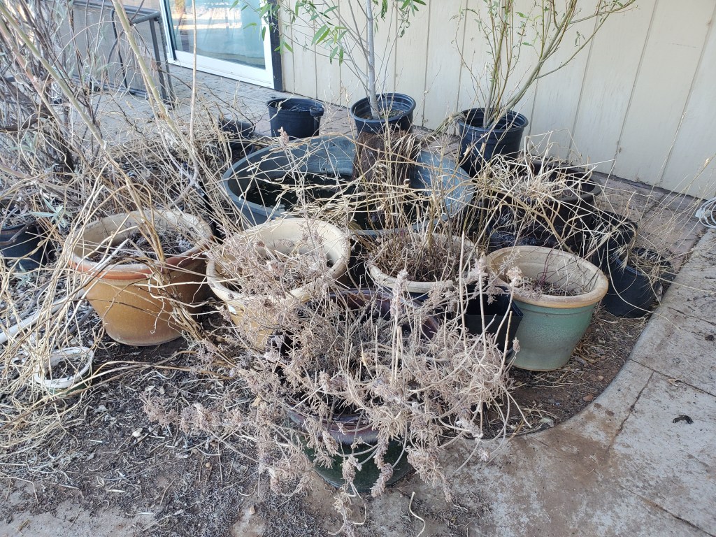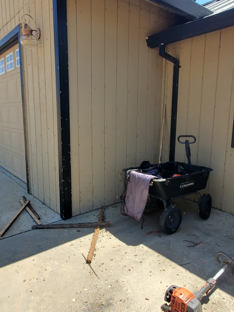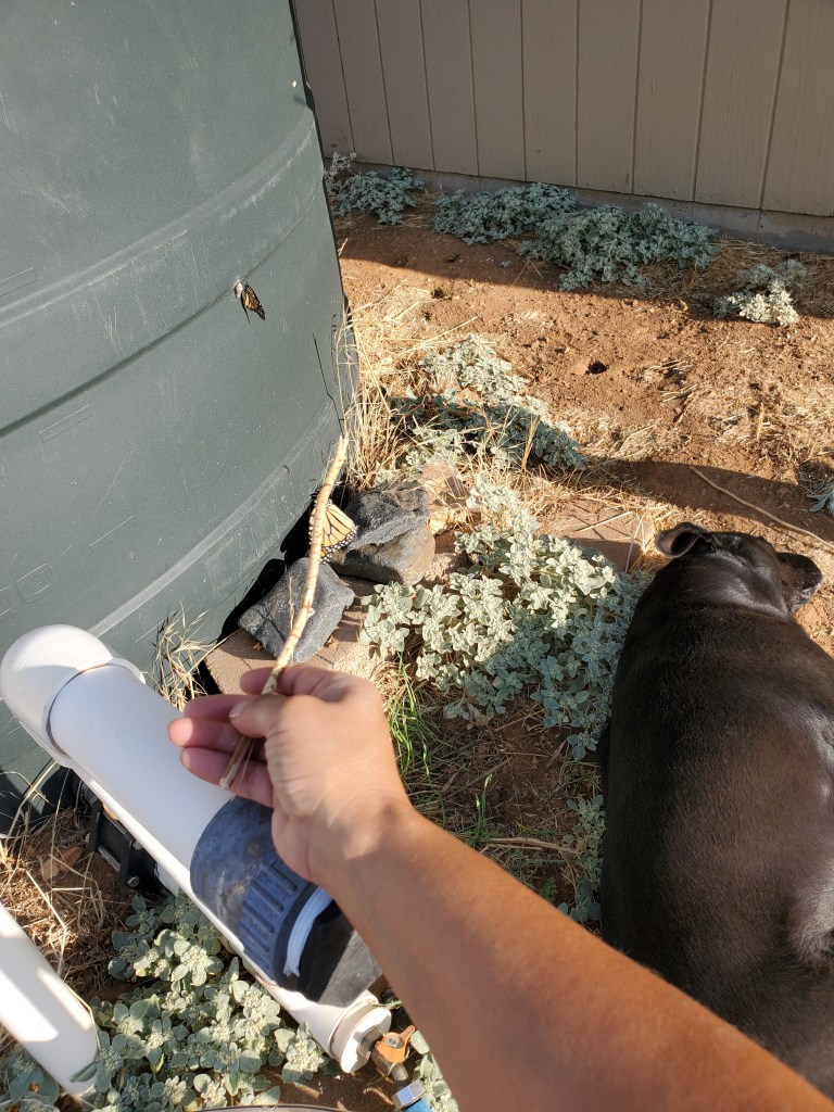 Just like in the movies, I will now take you to a flashback two weeks before the hoppers ramped up. David and I have been maintaining a strict watering schedule of every 5 days for the oaks. In anticipation of the mini heatwave, we also cut sections of burlap to lay over the gopher cages to shade the oaks. Sadly, two oaks appear to not have made it through the heat, the one in the exclosure and one of the driveway oaks. We continue to water them just in case the roots are still alive.