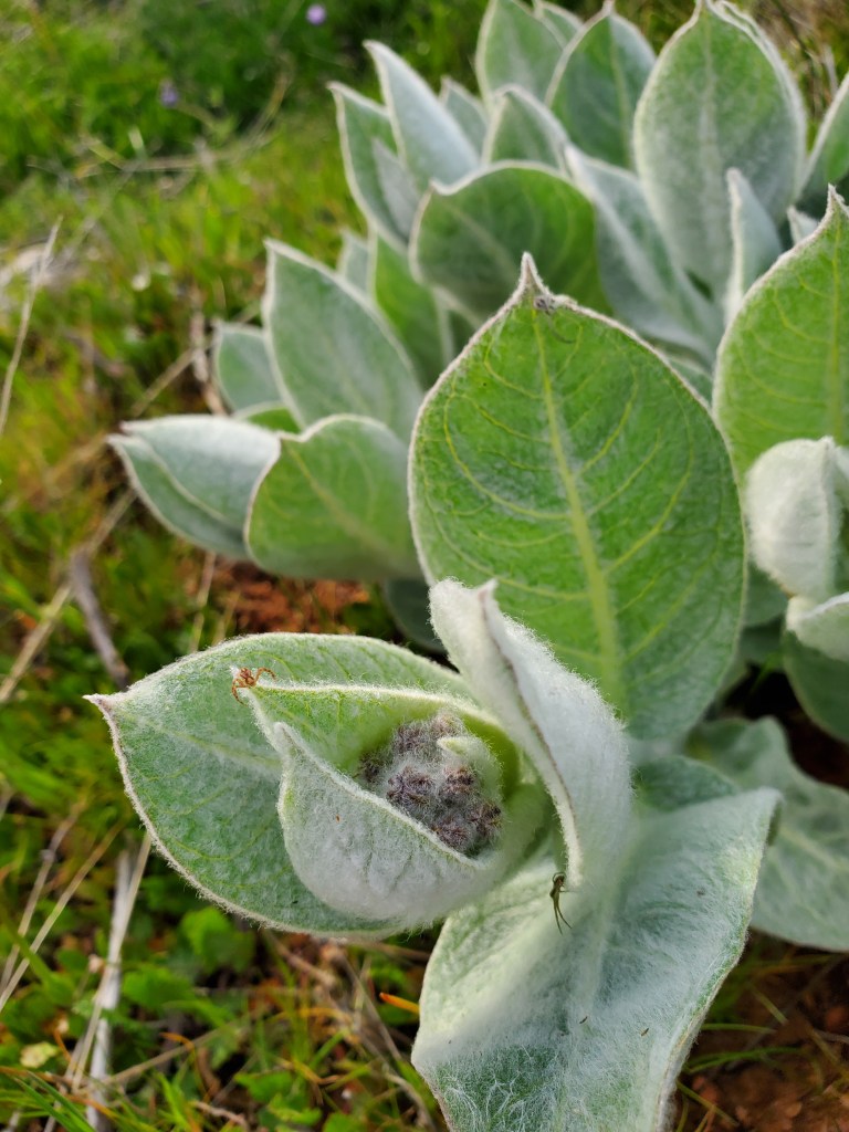 The plants on the south-facing slope were mostly eaten. There was evidence of seedpod destruction. Although not prepared with clippers and a bag, I began to harvest the pods. If I waited much longer, they would all be gone. Because I was pulling them off the stem early, the white “milk” ran onto my hand making my fingers and palm sticky. I continued, but could only find six seed pods remaining at the site. I moved to the north-facing site. More plants were intact, but were rapidly being eaten. There was a bumper crop of seed pods, including four massive ones. Normally, I would never harvest more than 10% of the pods and allow them to drop and open naturally. In this case, with sure death ahead of them, I went about my business of disconnecting the children from the umbilical cord, they, still holding tight for the nourishment it brings, and me, covered in mom’s milk grabbing her treasure for the possibility of life down the road.
