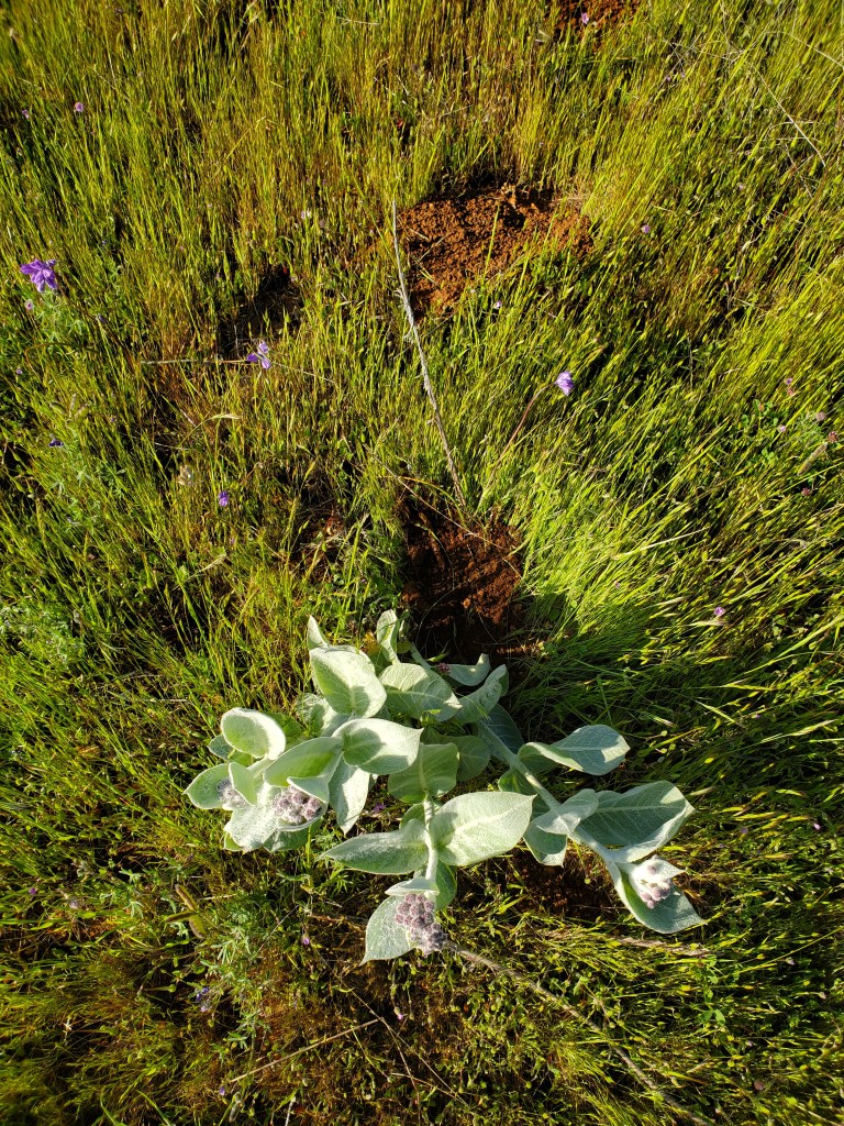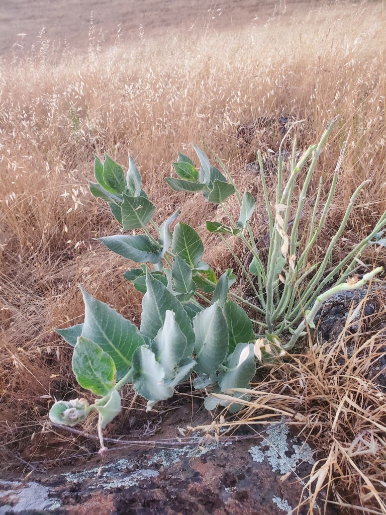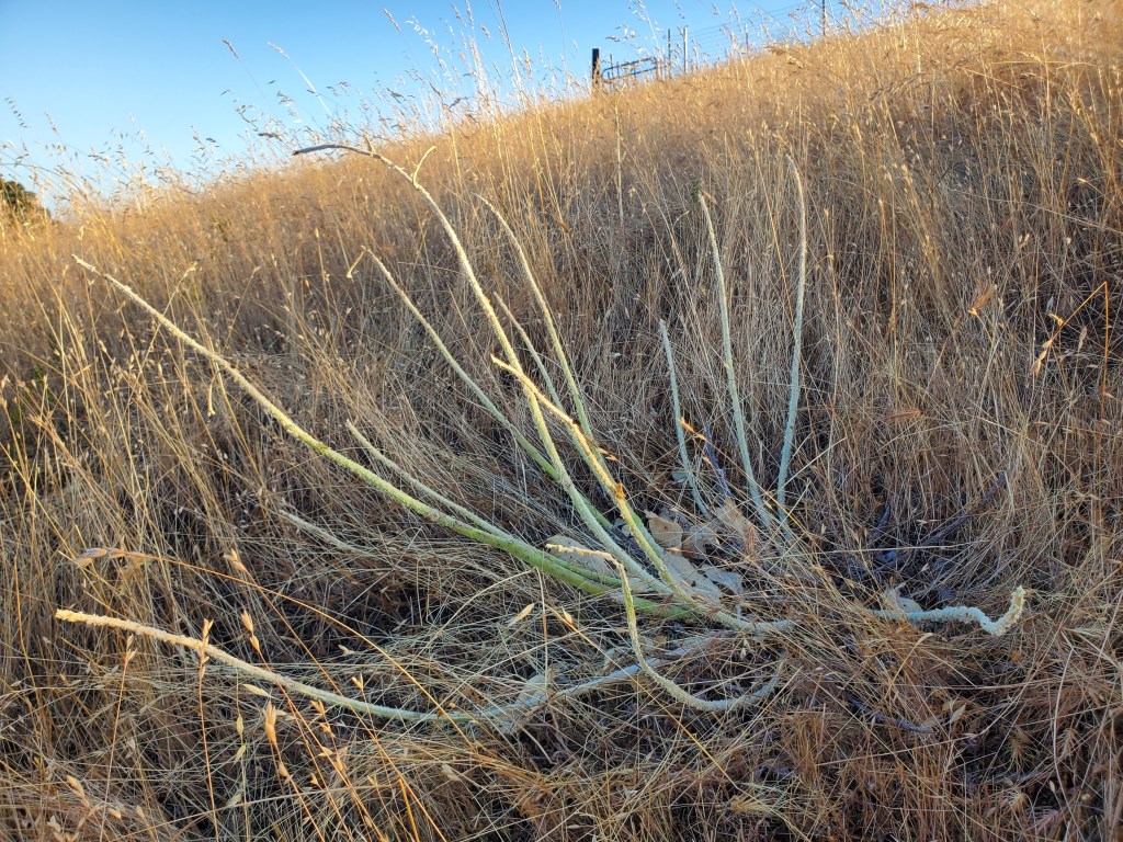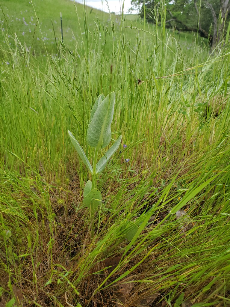 Similar to the oaks, the grasshoppers are all over the California milkweed. The only difference from last year is that the hoppers came later giving the milkweed more time to set seedpods. With the accident, I have not been able to monitor the sites. Last Sunday, I felt strong enough to walk up the hill, slowly and carefully. I found every milkweed at one stage or another of being eaten. On the more intact ones, there was still no sign of monarch activity. I am officially designating this spring a no monarch spring. Add that to the no monarch fall. It is beginning to feel very depressing.