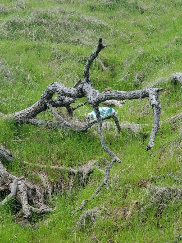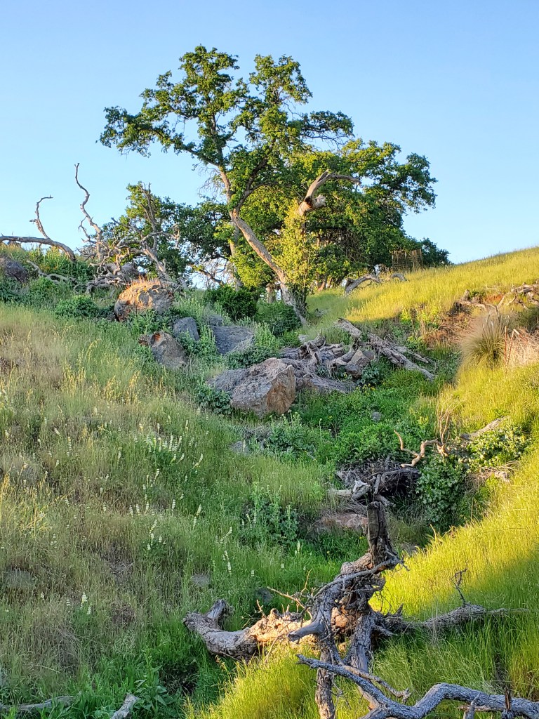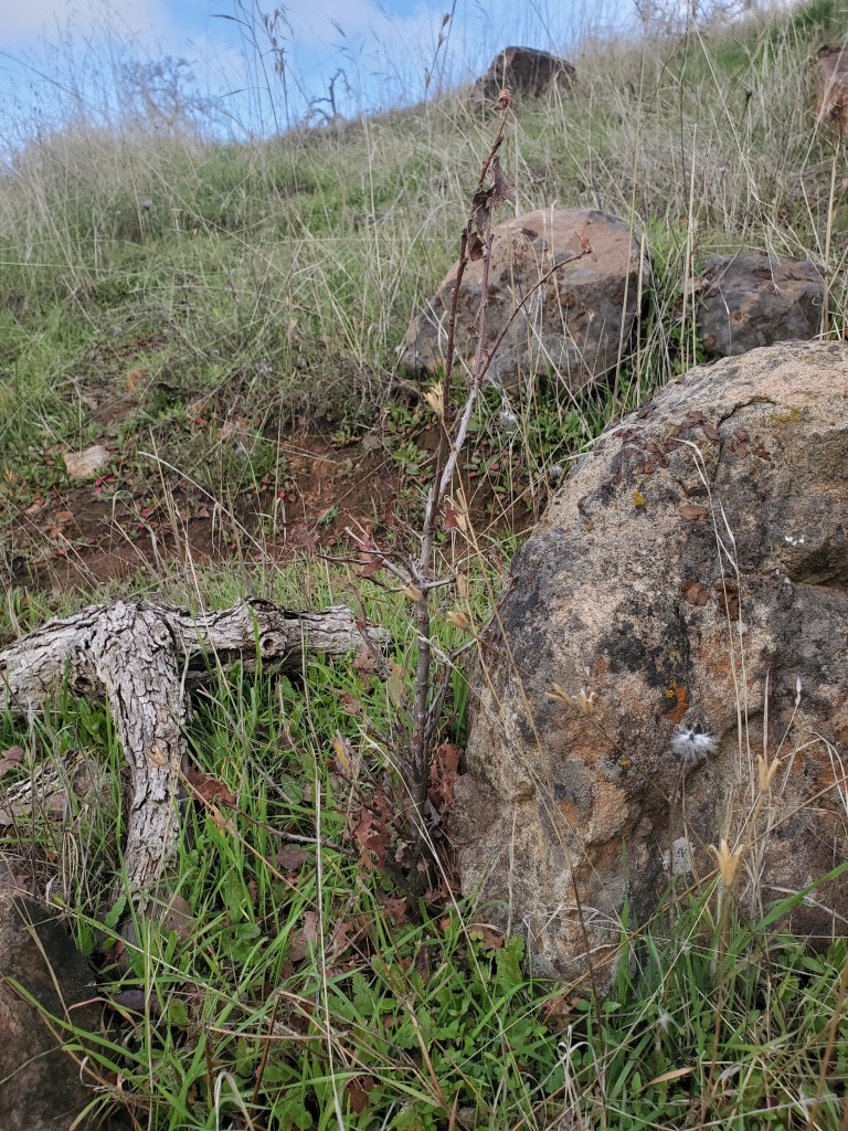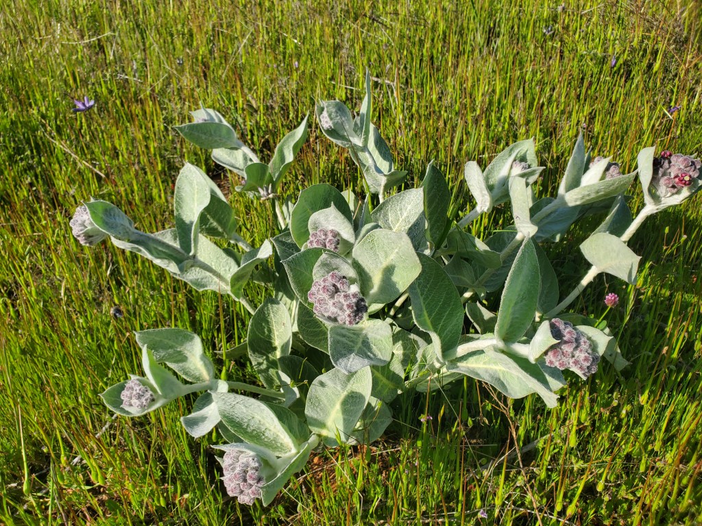 Similar to the oaks, the grasshoppers are all over the California milkweed. The only difference from last year is that the hoppers came later giving the milkweed more time to set seedpods. With the accident, I have not been able to monitor the sites. Last Sunday, I felt strong enough to walk up the hill, slowly and carefully. I found every milkweed at one stage or another of being eaten. On the more intact ones, there was still no sign of monarch activity. I am officially designating this spring a no monarch spring. Add that to the no monarch fall. It is beginning to feel very depressing.