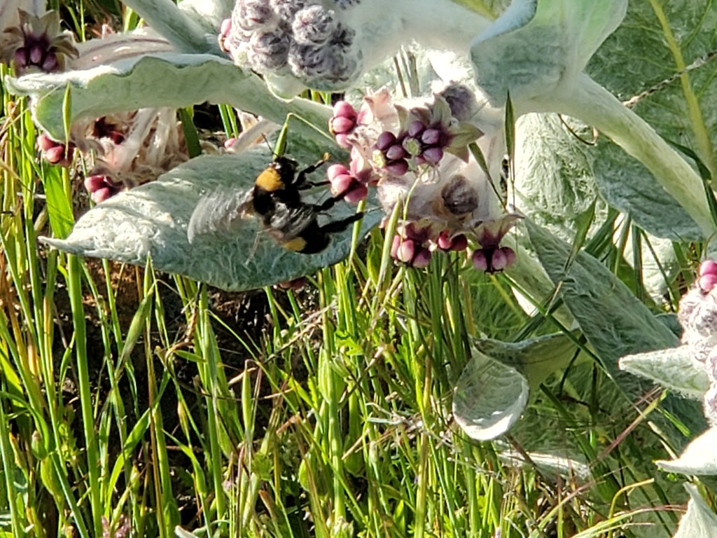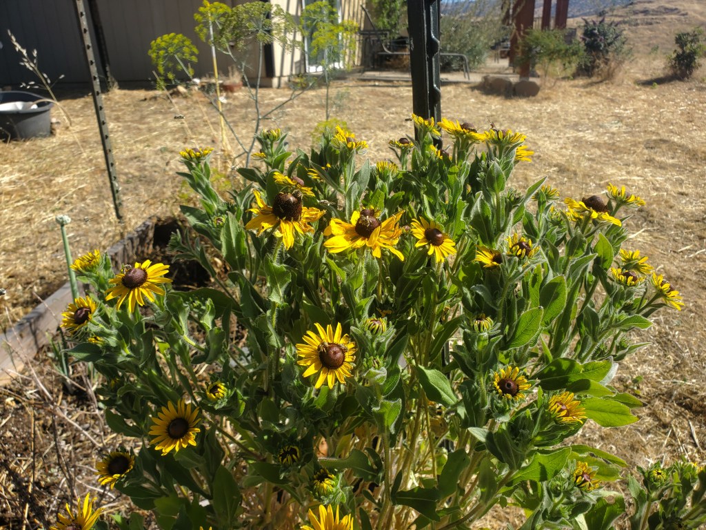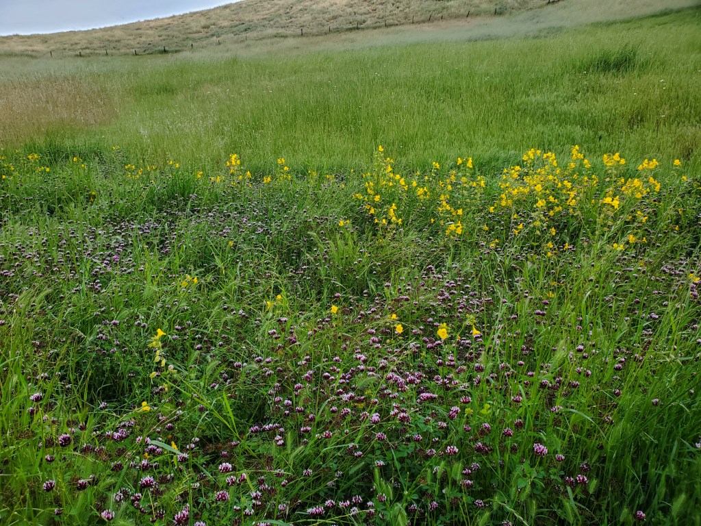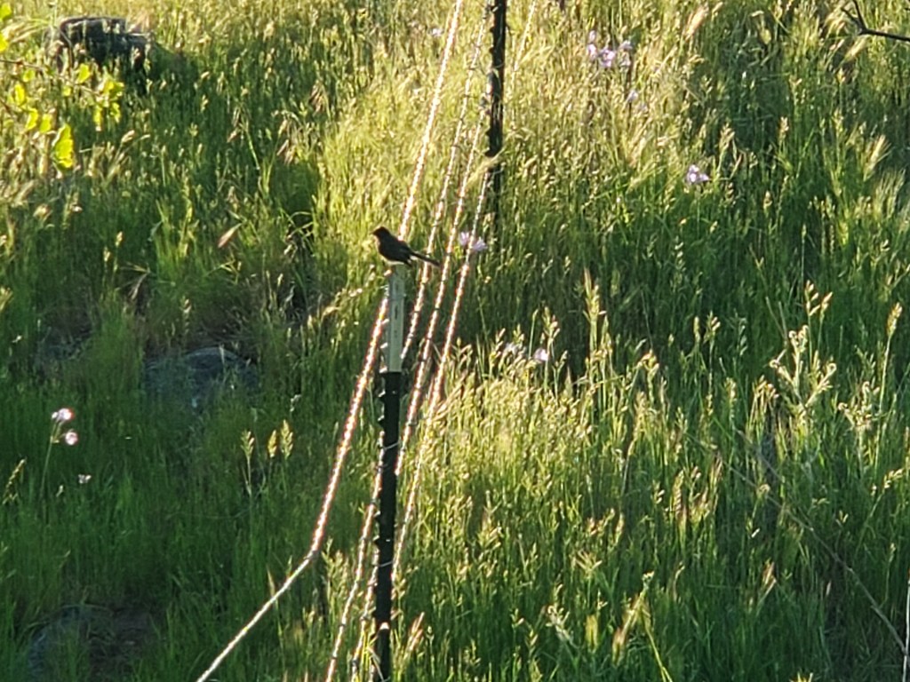 With the milkweeds done for the year, the cows still remaining on the ranch and the grasses nearly 4′ tall, I opened the gates to the far north field. The cattle have made their way into the field munching on the buffet of tall grass and thick green grass and flowers in the riparian areas that have been, as yet, untouched by cattle. Within the first day, those green patches were eaten down to dirt. My feelings are mixed. While I want to preserve the flowers I have left in the riparian areas, I also would like the tall grass to be grazed off a bit. Fire danger is always top of mind. All needs must be balanced, habitat for birds, pollinators while not trying to overstock too much on grass.