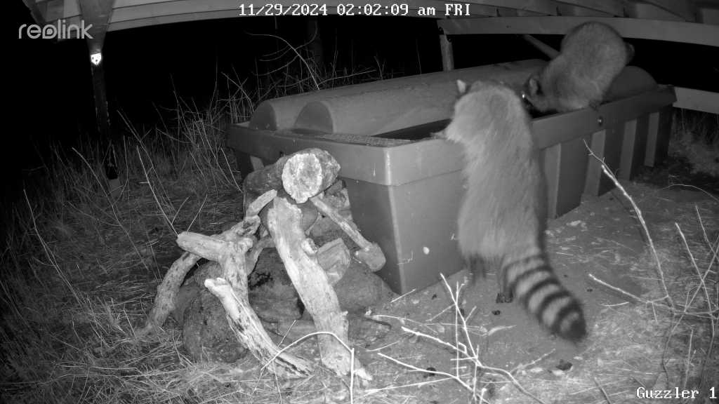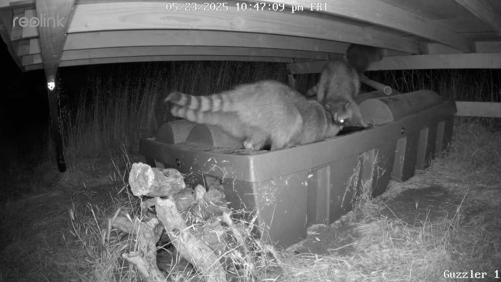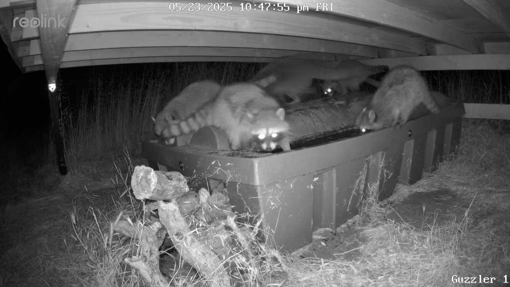 Even as the temperatures heat up, there are blooms, and I still see glimpses and/or evidence of wildlife. The guzzler has continued to be a center point for racoon and bird activity.