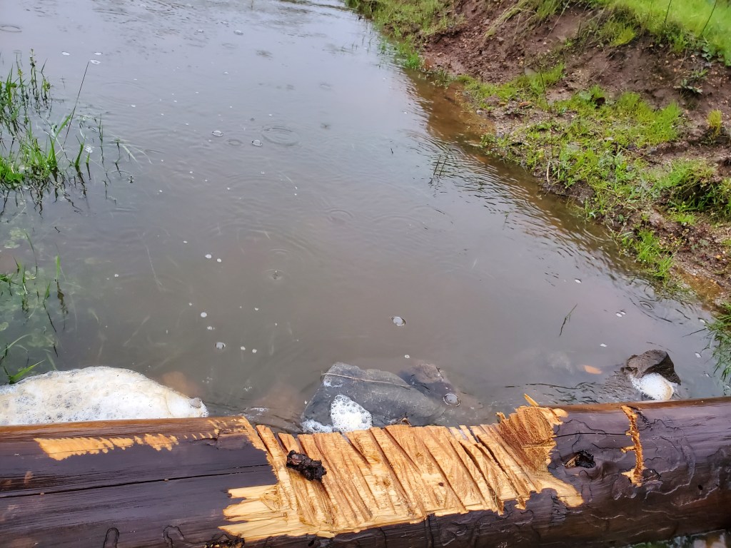 I put out the word I was looking for someone, and a friend, Jeanne Ann, said she had a grandson who was looking for work. His name is Sam. He jumped in and did weedeating freeing David to help with the oaks. We began placing his boxes and found that the two oaks at the downstream section of Spring Creek were already eaten. I lost my breath. I was horrified. When I looked closer, I saw that the bark had not yet been eaten off, like last year. Maybe there was still a chance. We covered and watered them anyway in case they were able to survive.