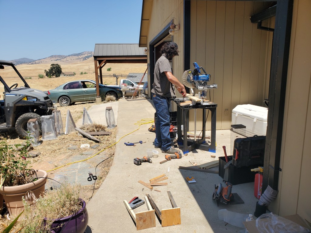 Then, a major issue happened at David’s work, and he was on a service incident for the entire day. Work stopped on my oak and plant cages. With my injuries, I was not able to do anything. I asked Sam if he knew how to build and use carpentry equipment. Turns out, he has done building before -so he had knowledge. He jumped in and innovated on David’s design and began pumping out screen boxes. Thank you Sam!!