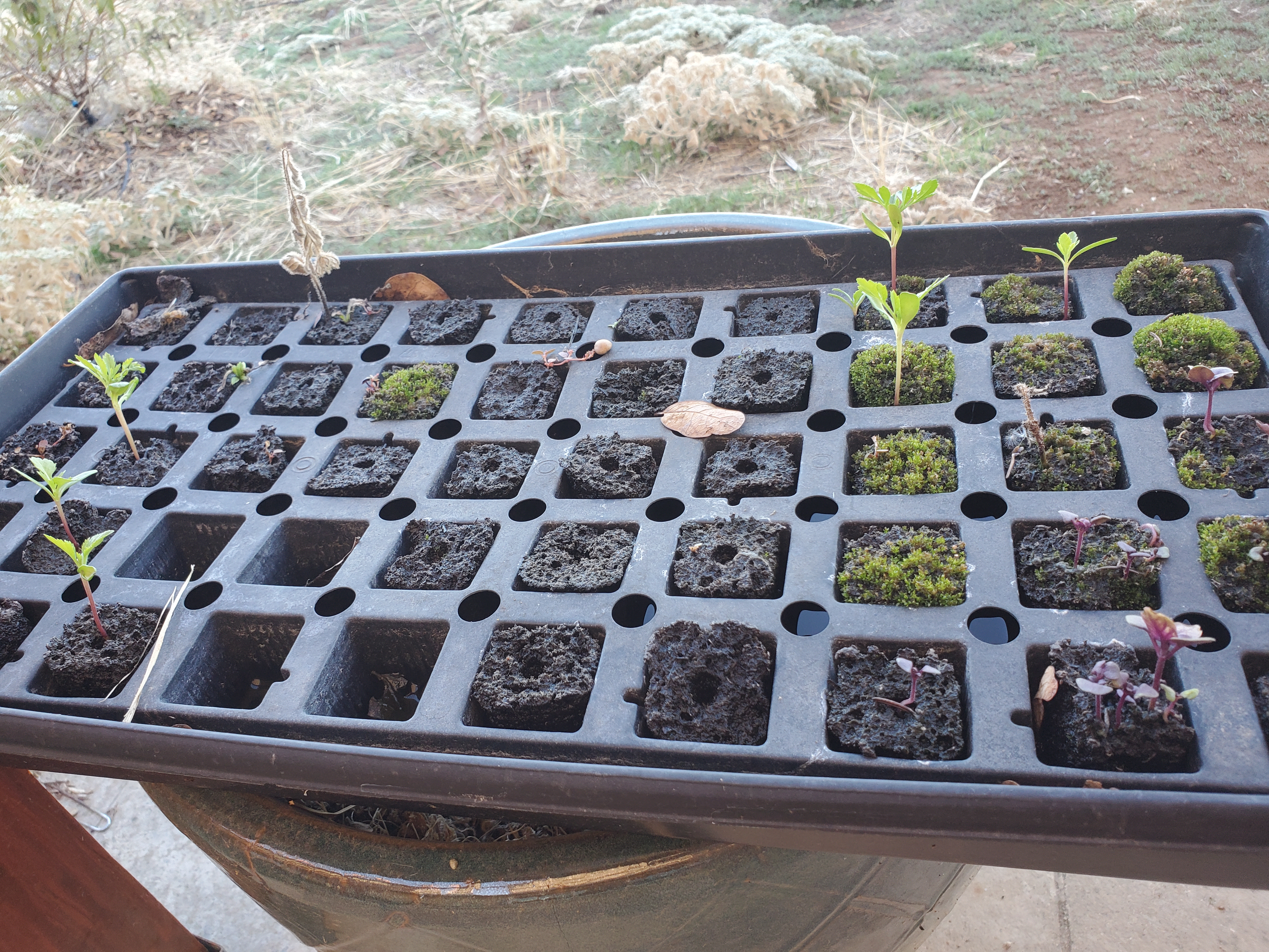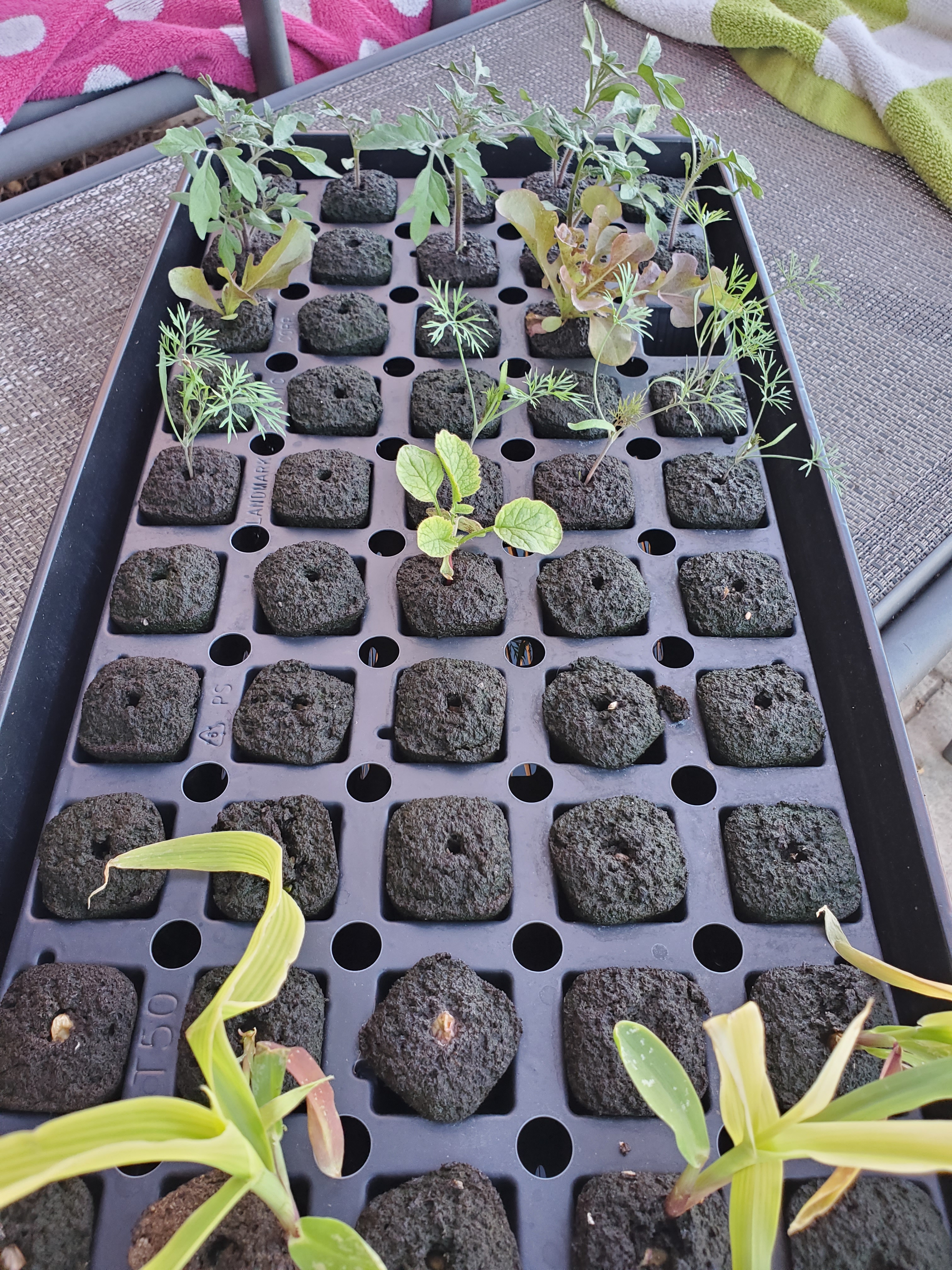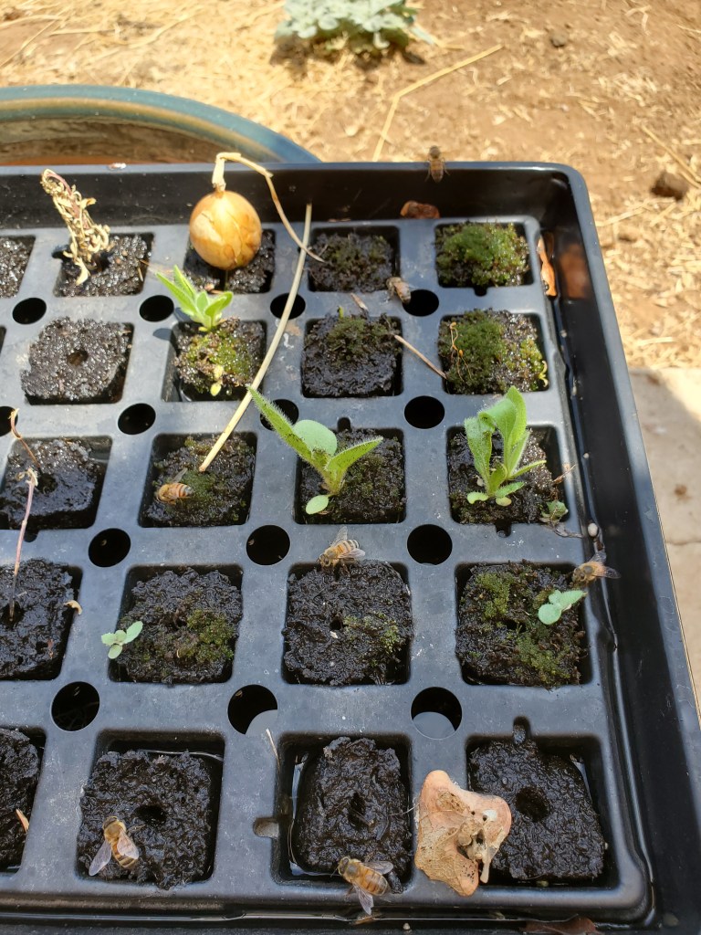 I raise a number of plants from high quality organic/non-GMO seed or seed gathered from my plants. Not only its it more cost effective, but I receive great joy from starting them and watching them grow. The seedling trays have also served as an important source of water for bees this year. Even birds have dropped by to visit. When the birds come by, I can be assured it is not just for water but seed snacks. Every seeding batch, several never start. For some, the seed just is not viable. For others, they become a snack for birds. I am ok with that. Fortunately, I don’t depend on my garden as my only source of food. If I did, I am sure I would feel differently. Additionally, I grow native plant starts, herbs and flowers. All of these, including my food, will become blooms for pollinators. It is a tripe win for everyone.