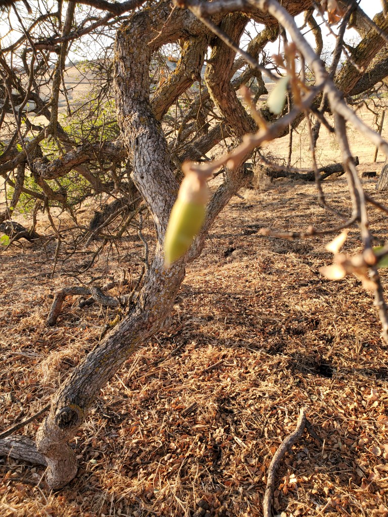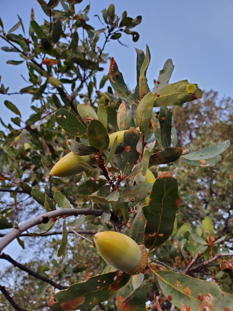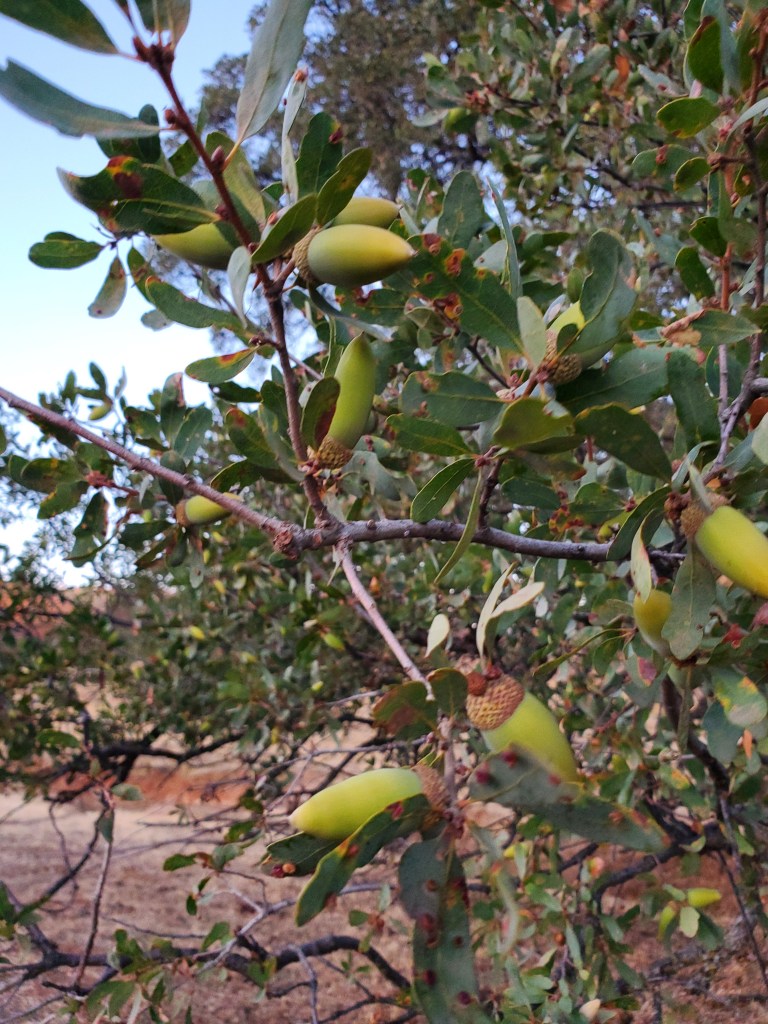 The other issue with the oaks and drought is reduced production of acorns, a critical food source for animals and humans alike. It is also the next generation of oak babies. We need to have an overwhelming number of acorns just to get a handful of seedlings. Sadly, most of the oaks on the ranch do not have many acorns, and many that are growing are still very green and undersized. I want to see those acorns mature and drop. All I can do is implement good land practices, swales to slow rainwater runoff, and hope for better next year. Land restoration is a patient practice. Stewardship is a way of life anyone can adopt anywhere they live.