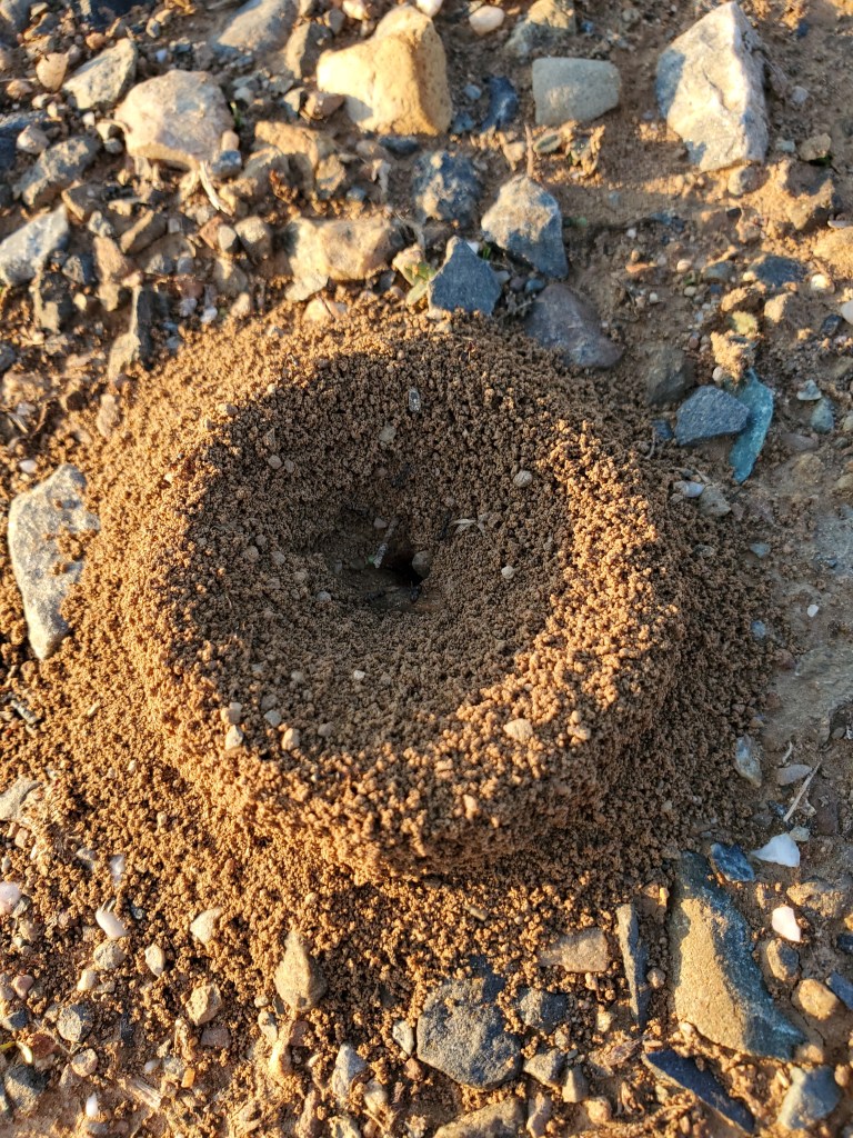 I am seeing a number of small ant holes in close proximity. I think I am living on top of ant LA. To think my bucolic, slow-paced surroundings are directly above a bustling, major metropolis of a billion small, vicious, biting red ants is a bit unnerving. People think I have too much coffee, but now you know why I keep moving and don’t stay in one place for too long.