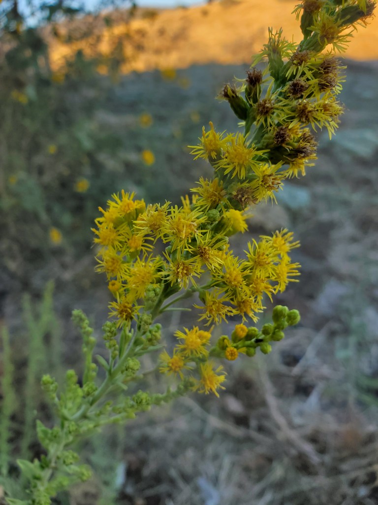 Pacific asterSunflowersMarigoldCA fuchsiaBuddleiaGoldenrodA large tarweed – one of my favorites (but not a favorite of my cattleman. It makes the cow hides real sticky).