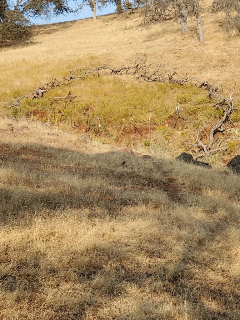 Over time, I have felt more comfortable that I know how to protect myself from the virus. With this comfort, I have had a handful of friends and family who I know follow good practices over to hike or have a meal on the patio. I was overjoyed to have my friend Maggie come over for a hike this past weekend. She has a well-trained eye and ear as a naturalist. Besides identifying blue bird calls, poison oak and a red tail, on our hike she spotted a healthy oak seedling. Somehow, it had avoided detection by the cattle. Maggie and I quickly made a brush pile to help protect it. I will go back out this weekend and build a cage around it. It is in a good spot to grow without other oak competition for light. How wonderful to have friends over again and to share the land with another person who loves it.