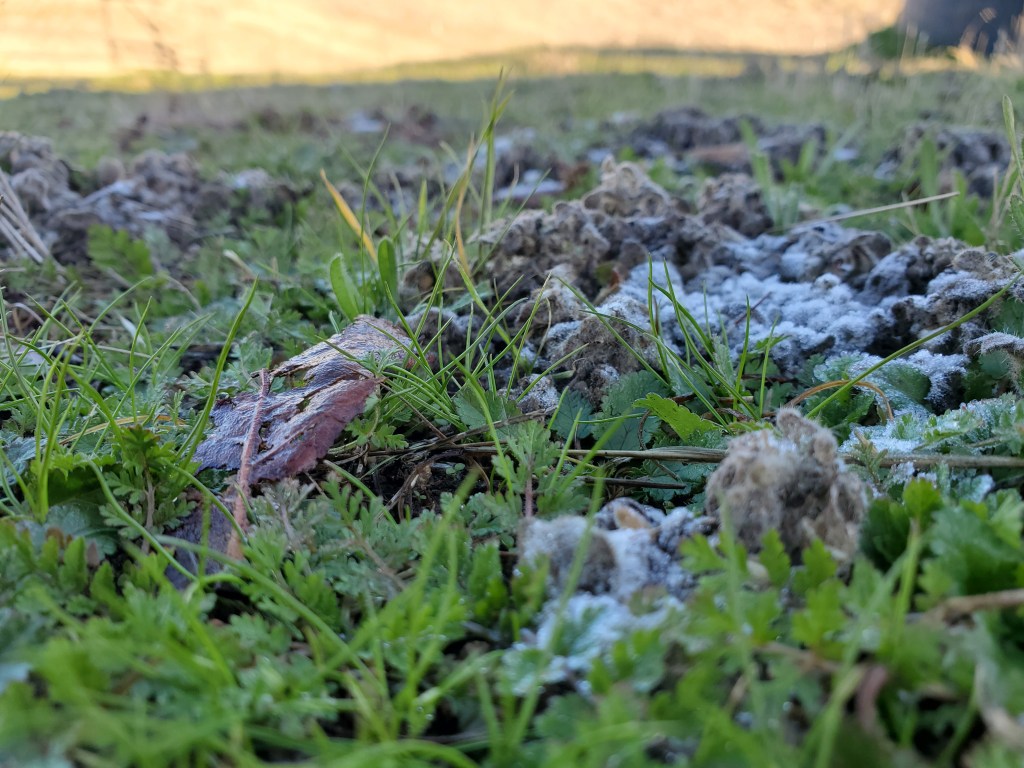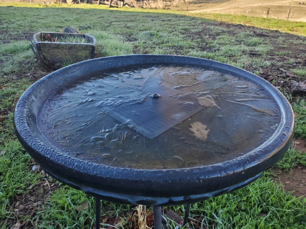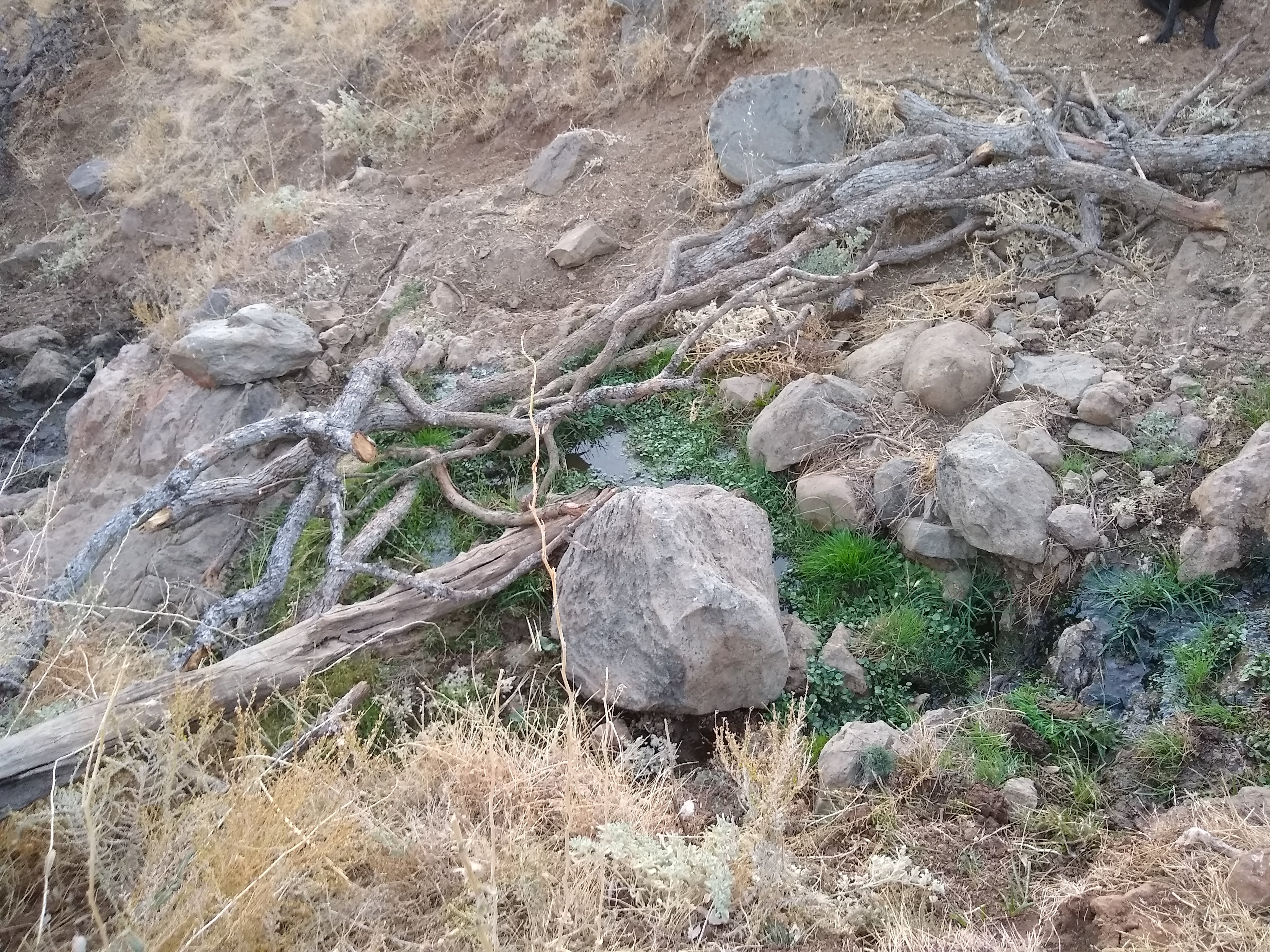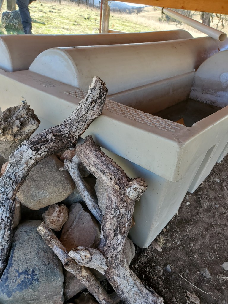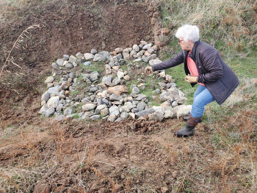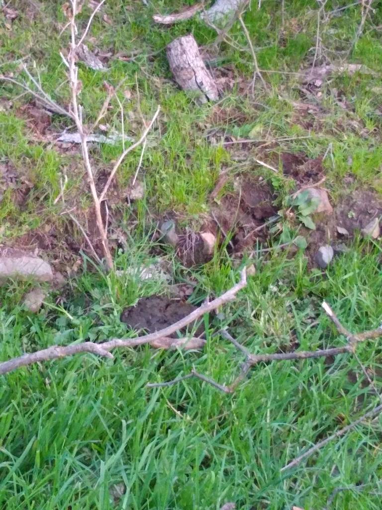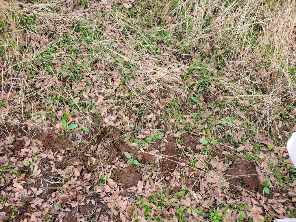 With my thumb still busted, wrist, knuckles and ankles still sprained, my job has been copilot, holding the water bucket with my good hand, carefully walking over to the tree, watering and removing the burlap and coir pad. David was doing everything else. As we went to each tree, I held my breath as I lifted the burlap shade cover, hoping I would see the healthy seedlings I had watered just 6 days prior. The two upstream on the Spring Creek…they looked great. I breathed out. The one by the lower pastures planted into the old dead oak, I lifted the cover, mostly eaten. There was one green leaf left. I’ll take it. Watered and screened. The discovery was unsettling. I became nervous for the others.