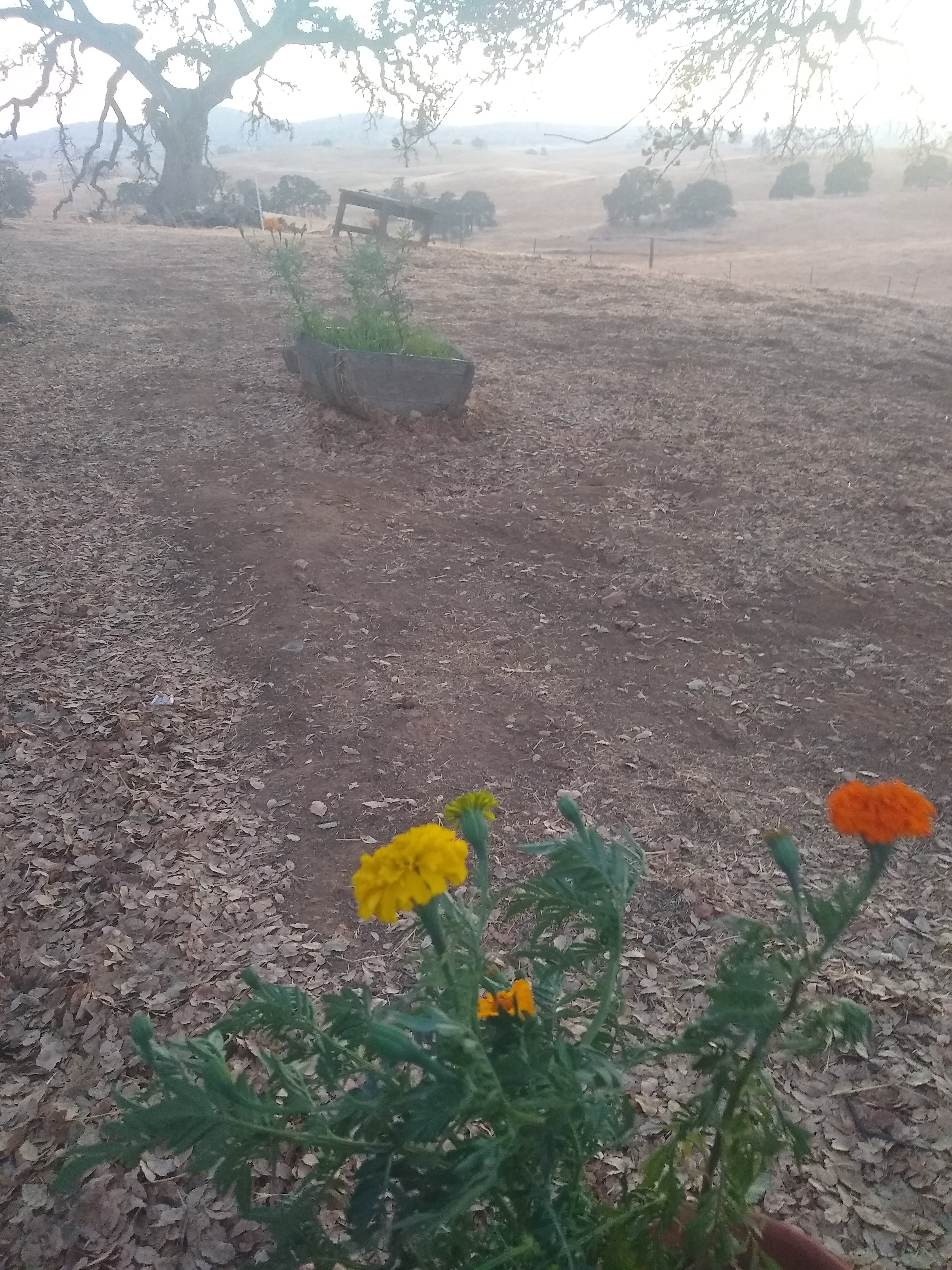 Just like in the movies, I will now take you to a flashback two weeks before the hoppers ramped up. David and I have been maintaining a strict watering schedule of every 5 days for the oaks. In anticipation of the mini heatwave, we also cut sections of burlap to lay over the gopher cages to shade the oaks. Sadly, two oaks appear to not have made it through the heat, the one in the exclosure and one of the driveway oaks. We continue to water them just in case the roots are still alive.