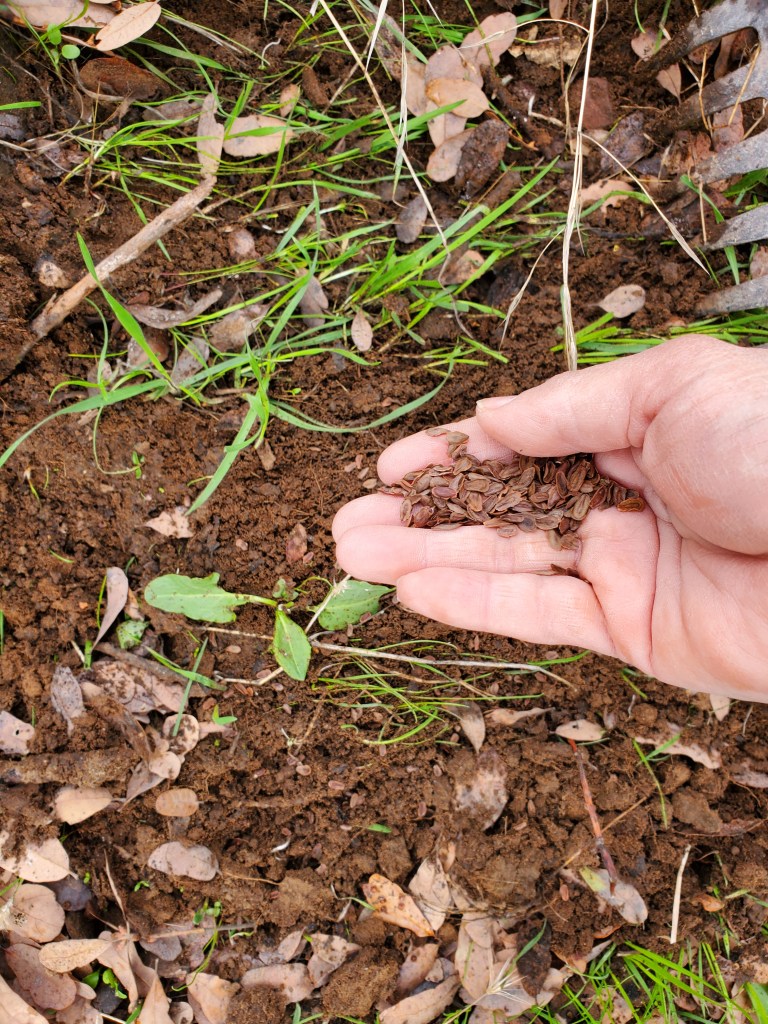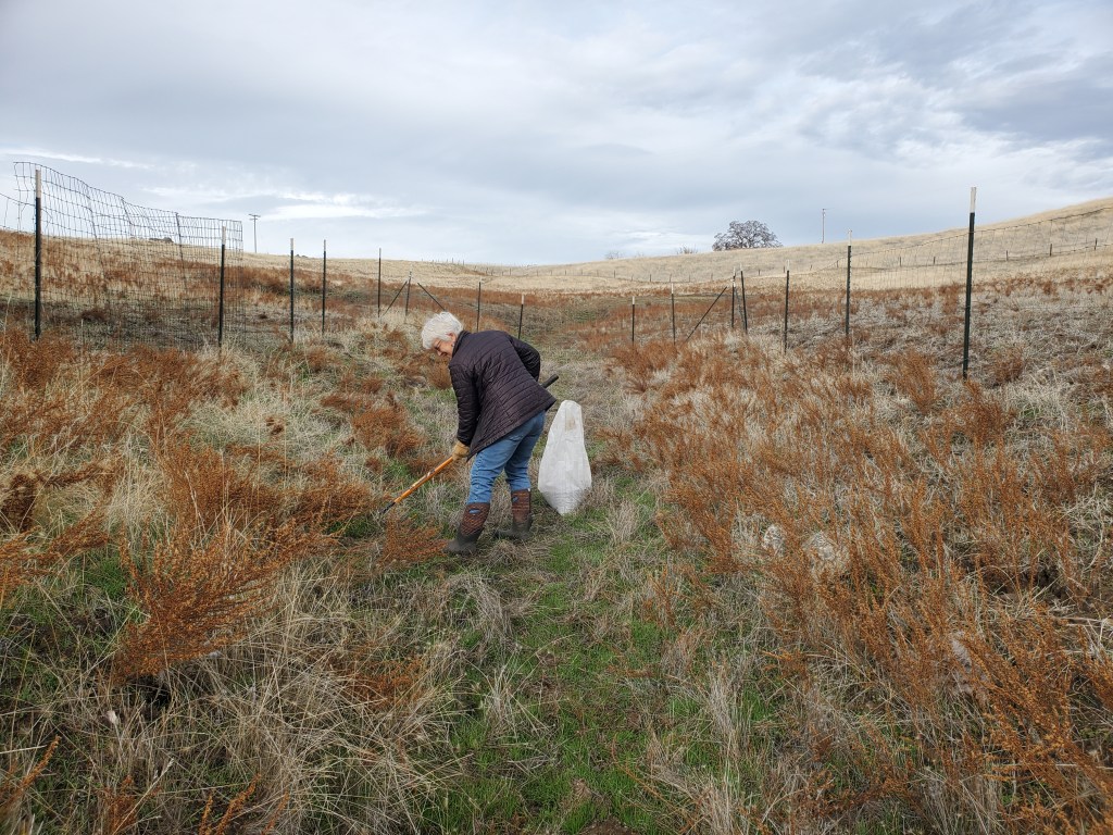 Except…this year, I am more ready – busted thumb and limpy leg and all. As soon as I saw some bites in the oak seedlings by the creek. I had David purchase aluminum screen. He began to make little screen houses to go over the gopher cages in which the oak seedlings were planted as well as other screen boxes for my pollinator plants. The poor guy. He is doing so much. I am getting better, little by little, but still cannot perform most of the ranch work I need to get done. David also has his paid work to do, which has been extremely busy of late. To enable us to get what we need done in the timeframe it needs to be done, I decided to hire someone to help us on the ranch, and to give poor David a break.
