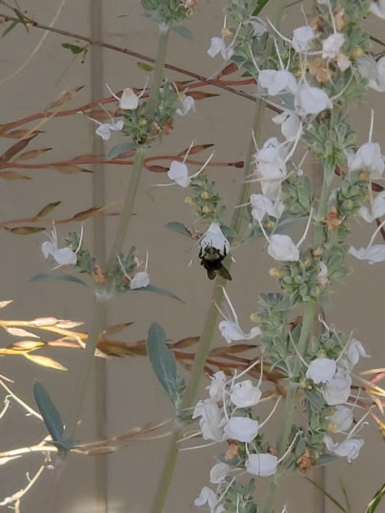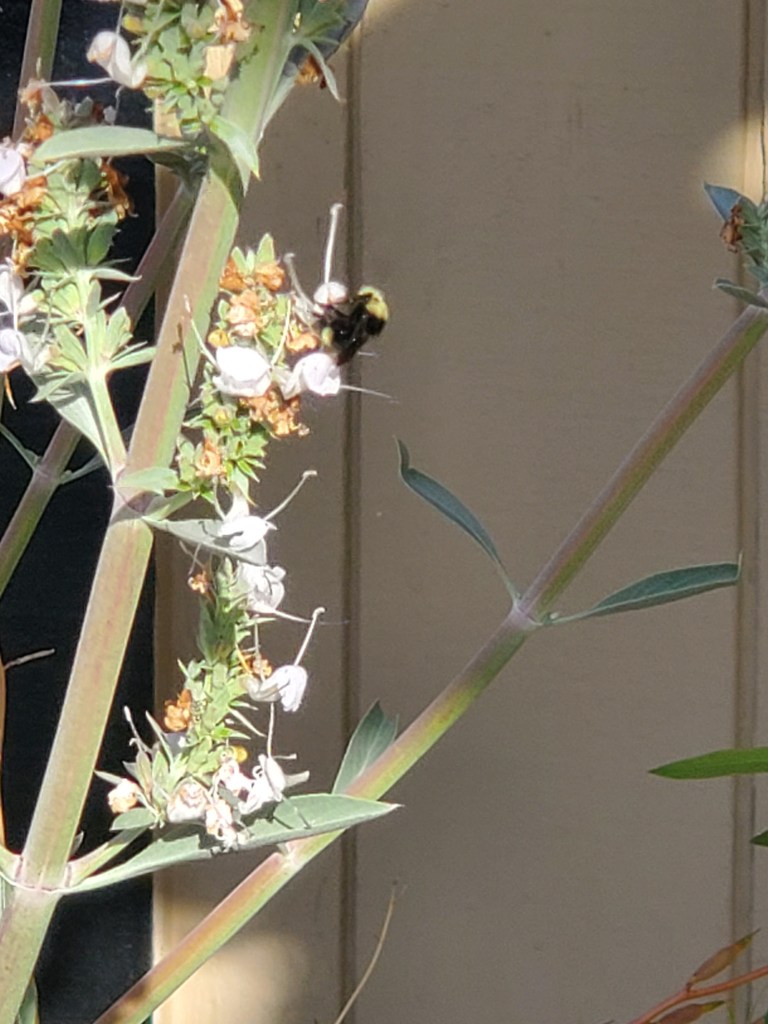 With the survival of my old white sage plant from the grasshopper incursion, its blooms have brought back a myriad of bumble bees and small pollinating flies. The onions are blooming as well and have encouraged micro pollinators into the yard. I love seeing those very small, hard-working insects. More lady beetles have been around, but not in numbers I’ve seen before. Of course, house flies seem to be abundant every year, and this year is no exception.
