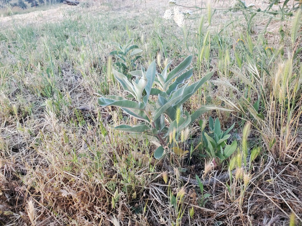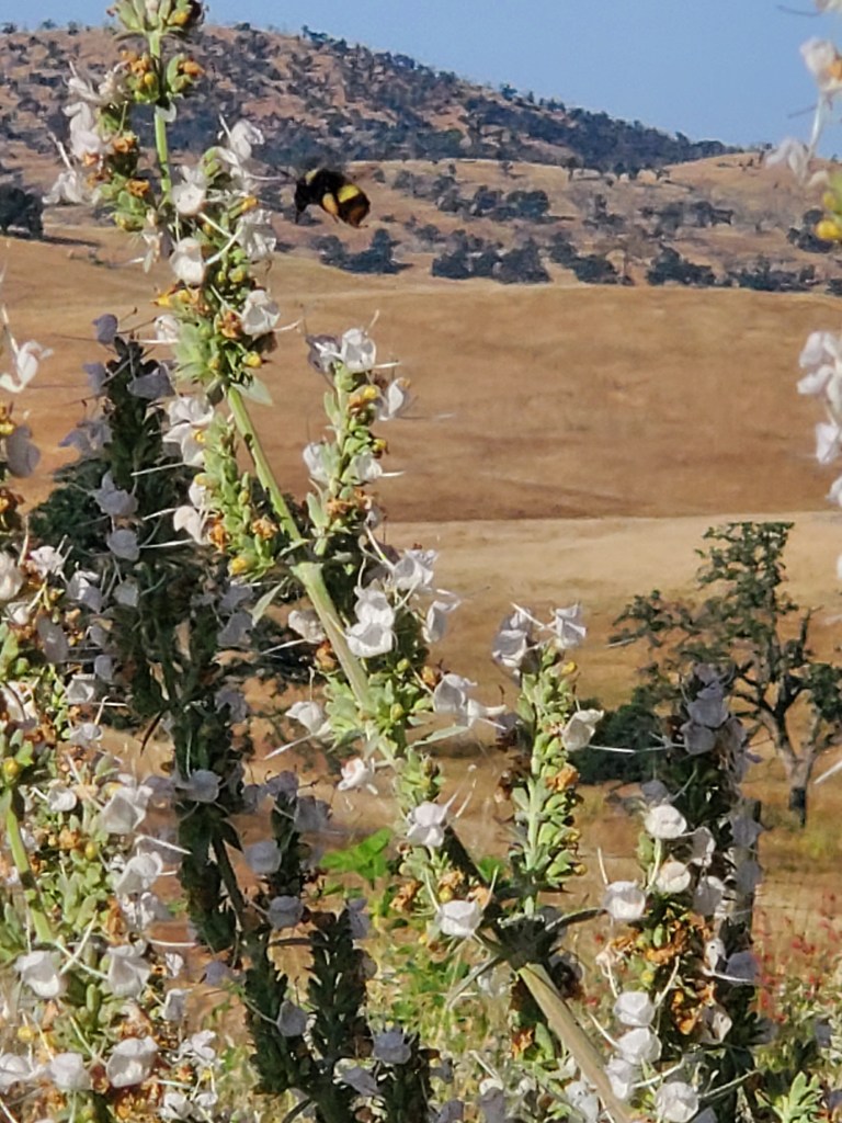 Sadly, the California Milkweed has remained pristine, no telltale bite marks, yellow stain or caterpillar poop. The north facing plants are still blooming with just a few beginning to set seed pods. The south facing plants, reliable hosts for traveling monarchs, are fully spent and well into setting seed pods. The only reason my spirit is not completely crushed is that the crotch bumble bees still reigned supreme on the hill in the milkweed plots. I even saw some down the hill near the cow clover. They seem to be increasing in number slightly.