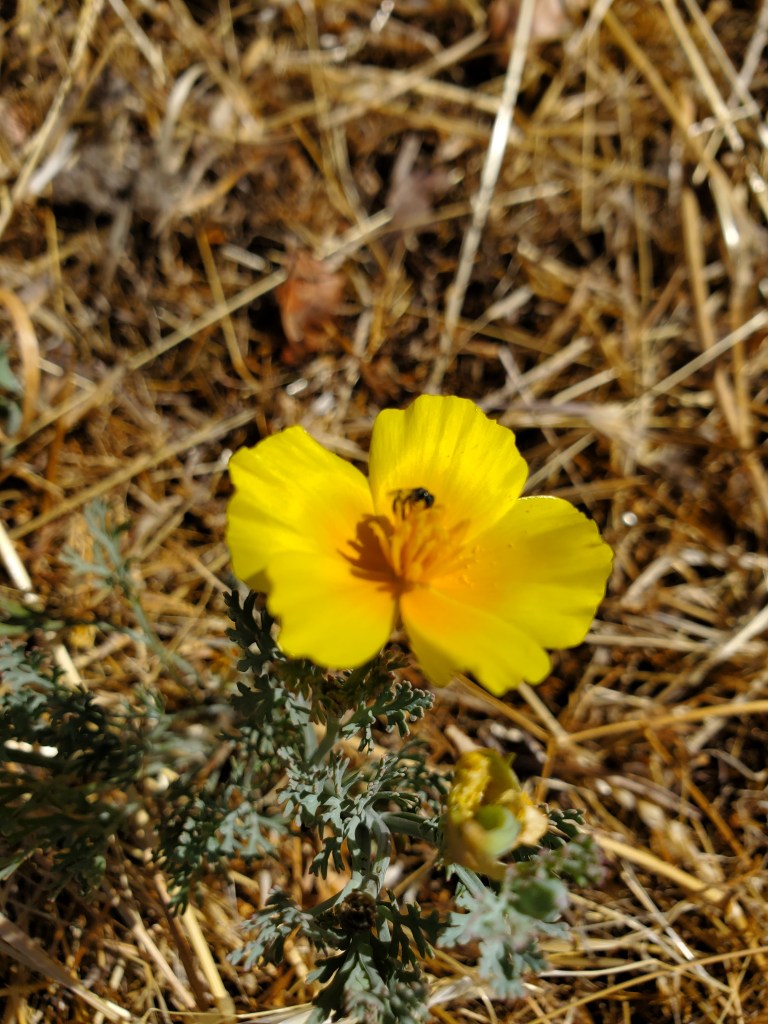 Yellow flower is a magnet for fly type pollinatorsPacific asterRabbit brushWormwoodMore yellow flowersSulphur buckwheatCA fuschiaWormwood – view 2Lemon balmMy favorite – sunflowerNarrowlead milkweedMatilla poppyFinal white sage bloomsDaturaCleveland sageBasilNon-native sweet alyssumBlack-eyed susanCA poppy with bee friend pollinating