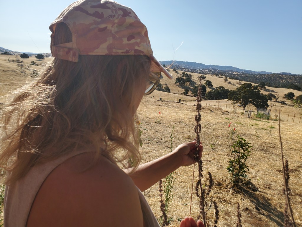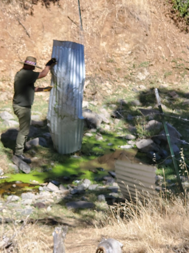 Love BibiNew natural damMom is on the ground – cool!Rolling under the wildlife friendly fencesGirls playFlagging the oak plantingsFixing gutter screen after a cow break in at Guzzler 1Healthy, happy Ca milkweedLove from MillsBibi waits patiently for us to come back down the hillHealthy oaks. I think the check dams are working#NOmylarChecking on the oak seedlings in the riparian exclusion area