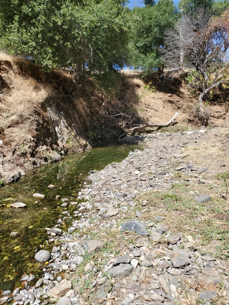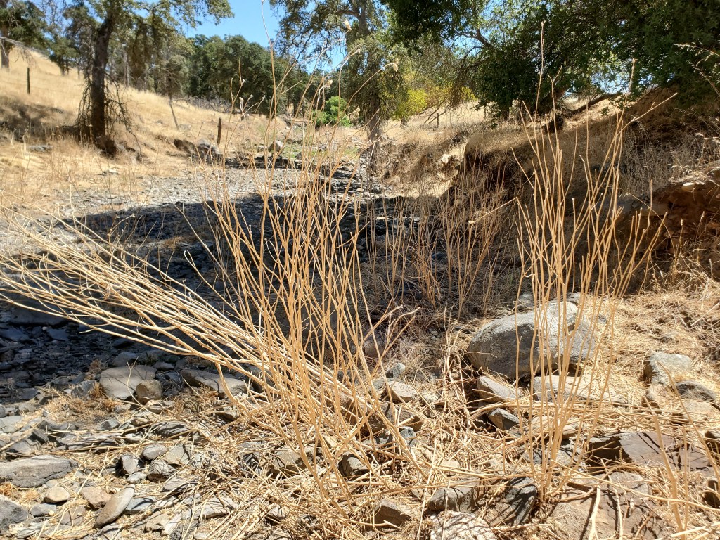 We have gotten lucky. The grasshoppers have not stripped everything. Their population exploded, especially near the riparian areas, then, all of the sudden, they abated. The hoppers had started eating their way up the hill. They hit some of my outlying plots hard, but then stayed away from the habitat closer to the hilltop. The oaks planted on the lower Spring Creek area and those down hill from the hilltop were not so fortunate. They were eaten, but quick action with screen boxes saved some. Several have come back and are leafing out again. I gave out a loud yip when I saw that. I had felt so dejected. I still lament the loss of the other trees. It is difficult to get a blue oak to grow under my specific conditions – heat, grasshoppers, gophers. Every year lost is one year less with young trees. I have to do better.