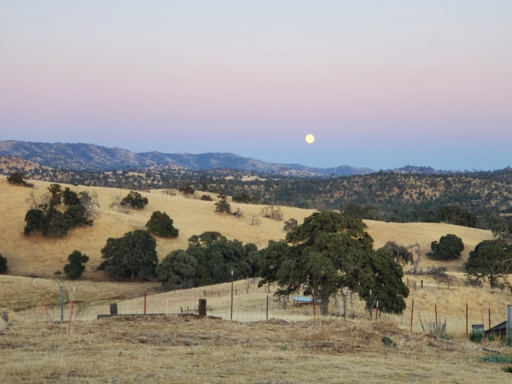 Moon over HornitosAcorns beginning to setBoneyard fire in the north part of the countySunset on my way back from watering oaks