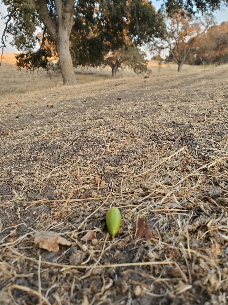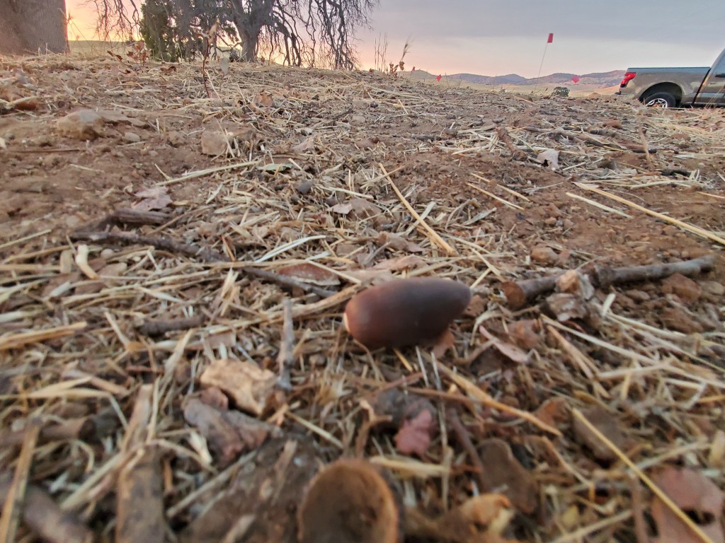 While I did not have time to gather acorn for flour making, I did have a chance to gather about 200 for planting across the ranch. I harvested from the grand old oak near the house and the smaller oaks in the Spring Creek riparian area. I am planning to do a combination of seedlings (16), and the rest will be plantings of acorn. I do not want a repeat of last year when the grasshoppers ate all my back-breaking work.