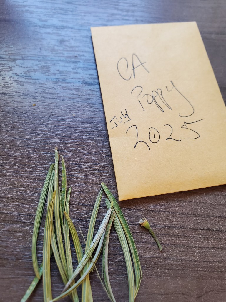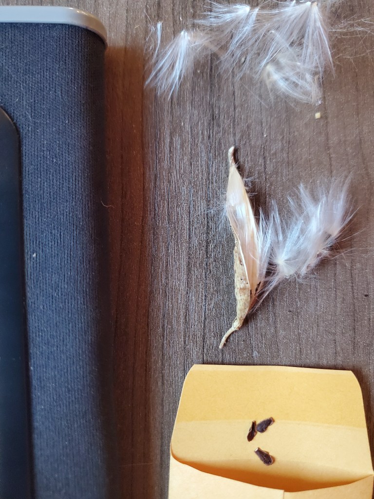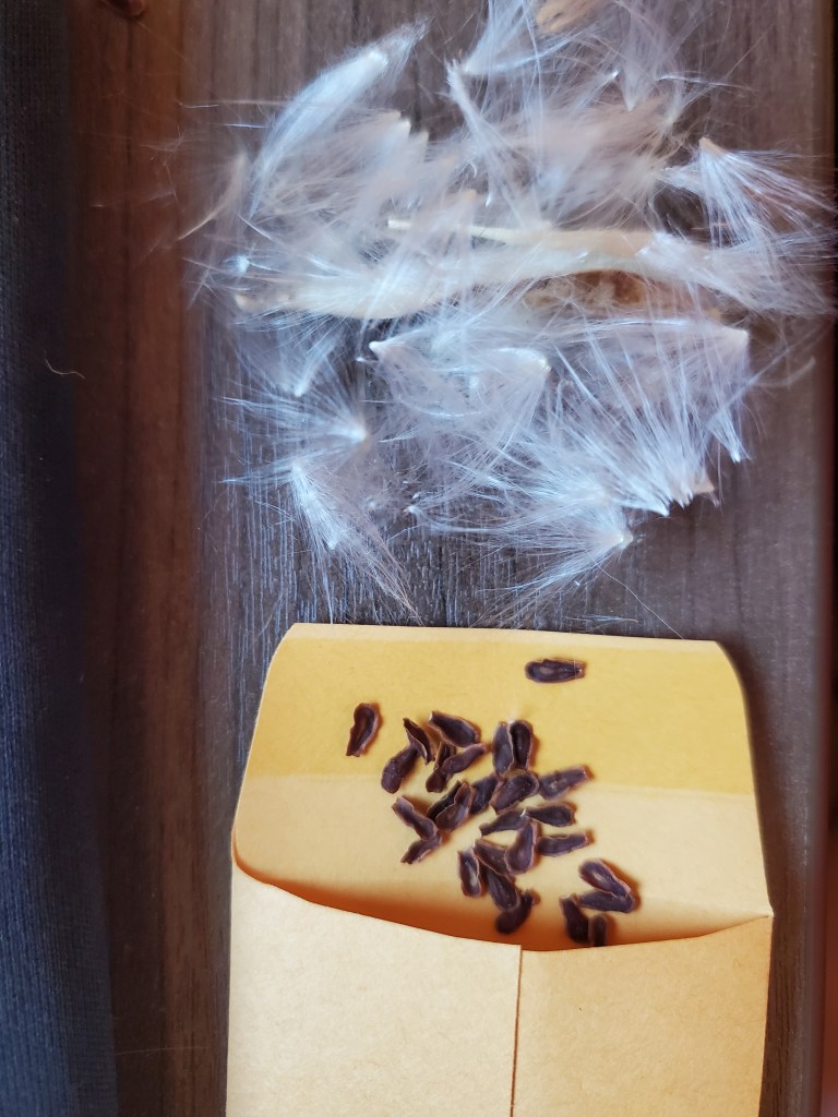 Gathering from black-eyed susansBlack-eyed susan seedTucked away and labeled!This is narrowleaf milkweed seed. The seed is attached to this delicate silk designed to float away. They emerge from the pod all tucked in and ready to disburse. I take the seeds off the silk and store for next year. Poppy seed pods