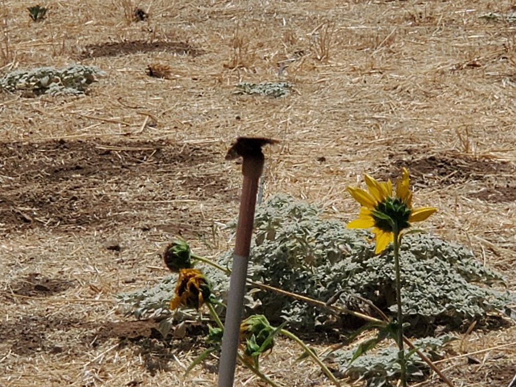 With the tin down, it opened a small pathway for cattle to get into the exclusion. Grass and creek plants that typically grow inside the exclusion area were nowhere to be found. Adding to this was the large number of grasshoppers near the riparian areas this year. Thistle, which the cattle normally leave alone due to their spiky, tough exterior, were stripped to skeletons. Both contributed to no vinegar weed (another favorite), less watercress, no milkweed and no thistle nectar.