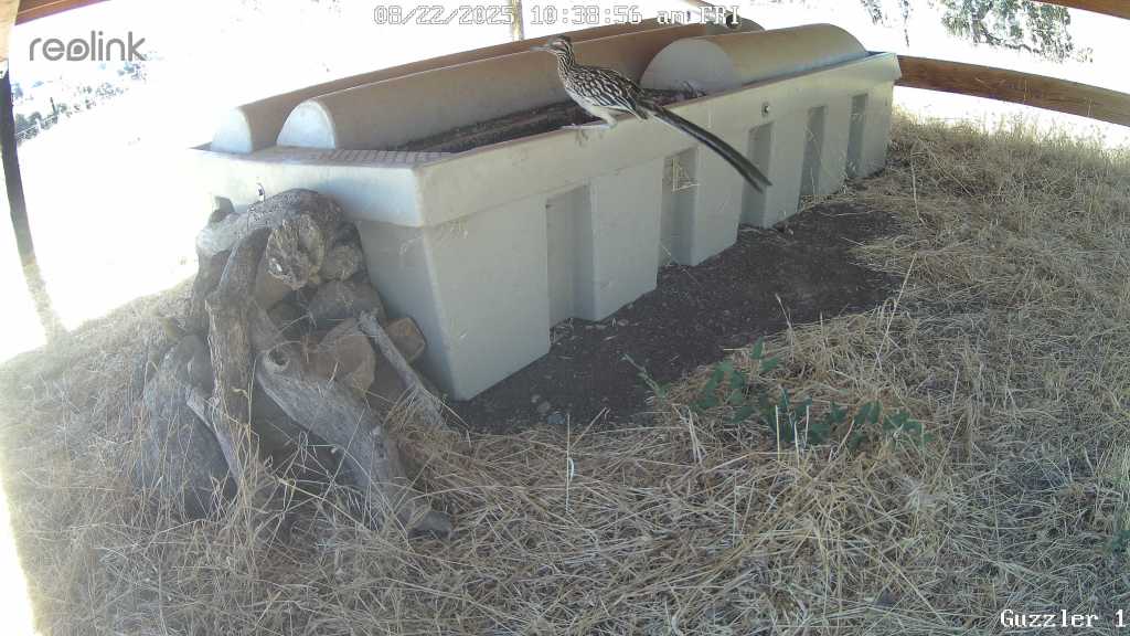Bobcat hunting miceSkunkRacoonRoadrunner!Roadrunner contemplating a drinkGORGEOUS bobcat leaving guzzler after a thorough look for mice
