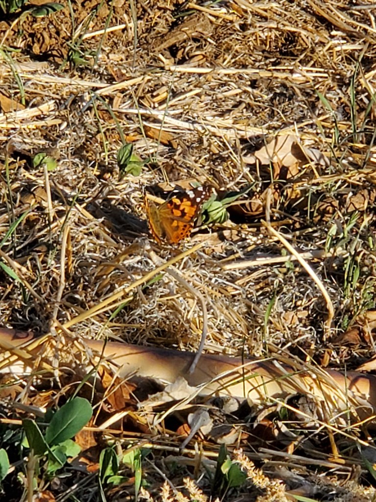 I immediately got to my feet and watched her run downstream, then across the creek, under the fence, up and over the hill. I didn’t think much of it until I followed downstream and found upturned soil from pig rooting, hoof marks sliding down the creek banks, a missing seedling from the slide, and then I worried about all the acorn I planted. Could she have rooted them out and eaten them? All that hard work for nothing? Pigs are non-Native and are very destructive. As a lover of all life, I have long pondered what to do about this issue. I hate the idea of killing them, but I may need to seriously consider that. With them in this area as often as they are, I may not ever be able to make headway on habitat. The survival of my Native relatives, monarchs, bumble bees, grasses, oaks and milkweed are paramount to me.